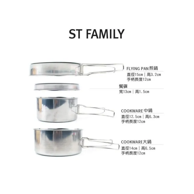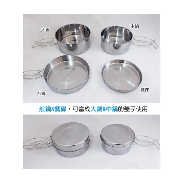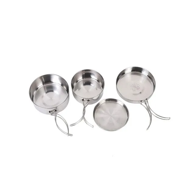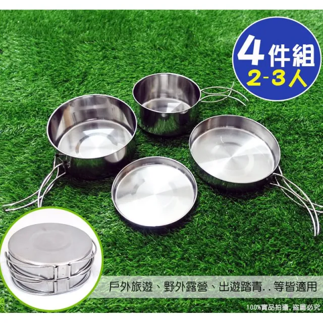 露營鍋具套裝不鏽鋼野炊4件組|戶外登山炊具 2-3人適用 附收納袋