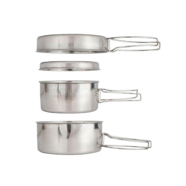 露營鍋具套裝不鏽鋼野炊4件組|戶外登山炊具 2-3人適用 附收納袋