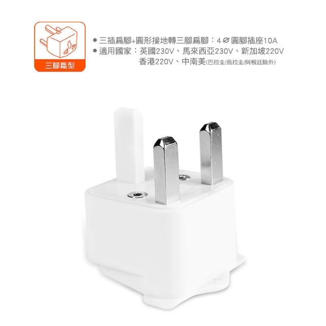 轉接插頭 旅行用轉接頭(UK)-三插轉三扁腳 適用英國 馬來西亞 新加坡 香港 中南美洲-白色