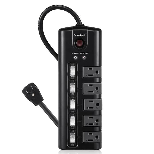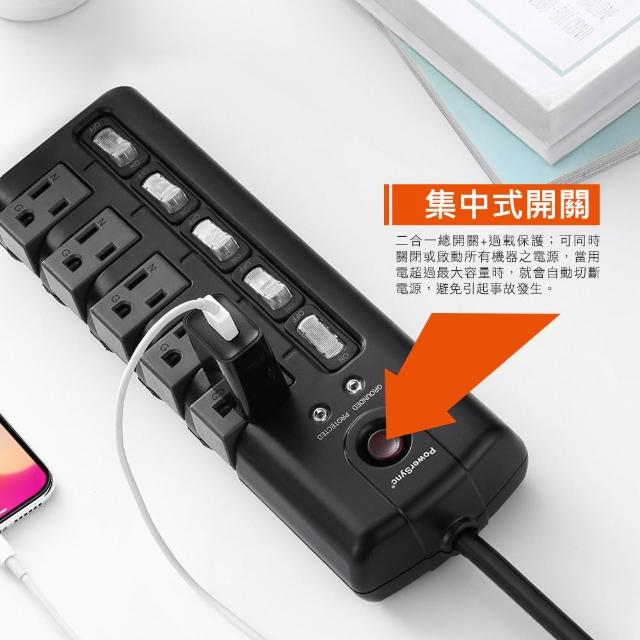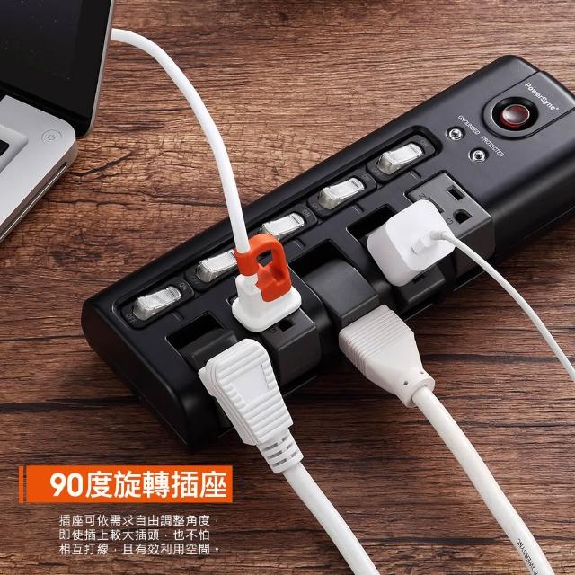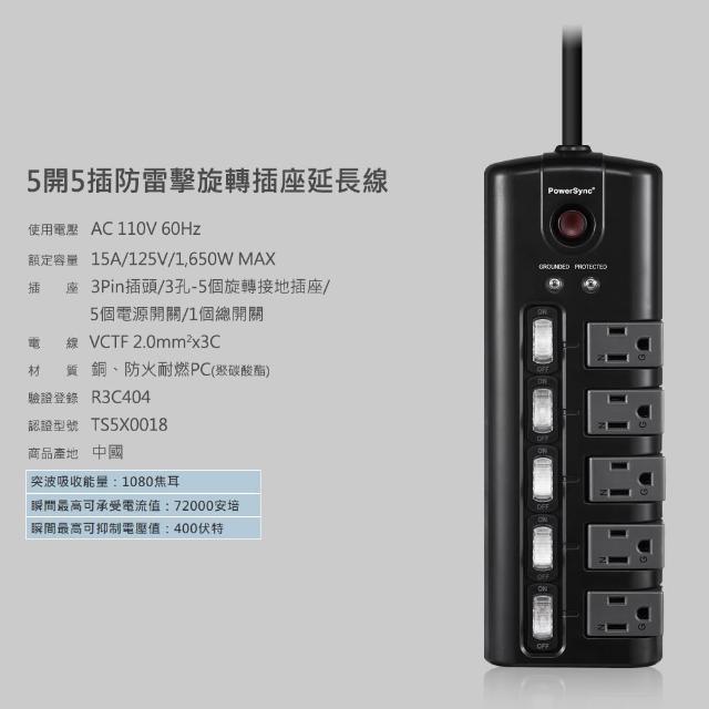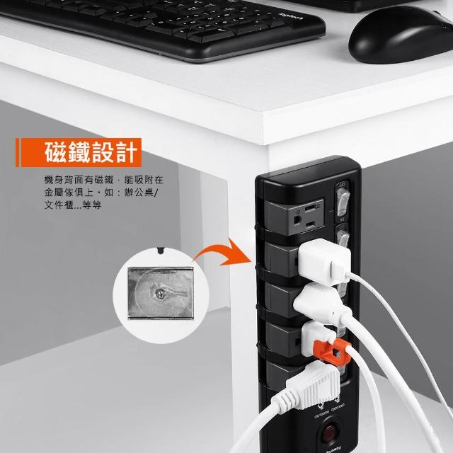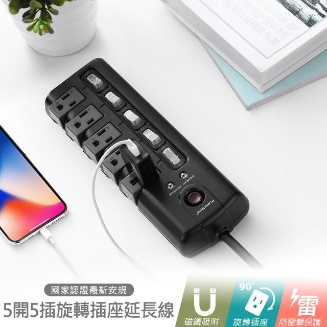 延長線 五開5插 旋轉獨立開關插座 磁鐵吸附-1.8m-黑