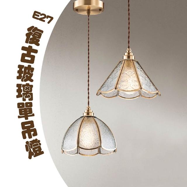 123燈飾|復古玻璃單吊燈|E27|附燈泡|咖啡廳吊燈|銅製品|海棠花玻璃|48-4553、4554