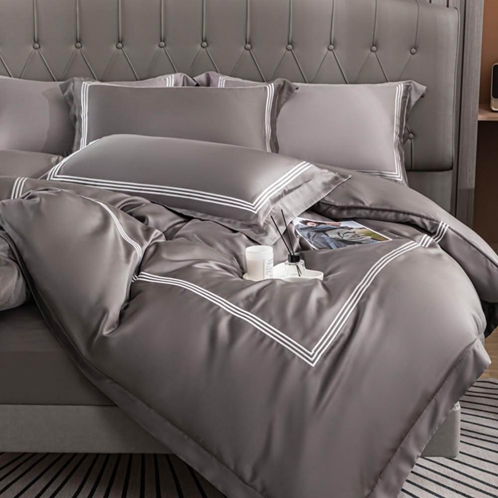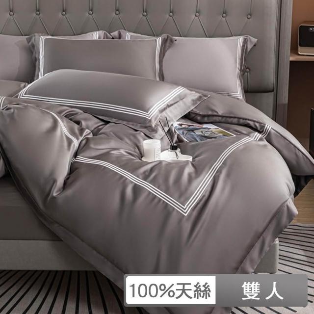 DV美好生活 60支100%萊賽爾天絲™ 素色刺繡床包枕套組 雙人5*6.2尺