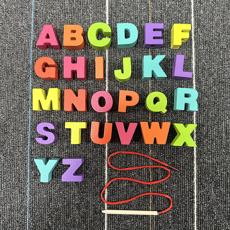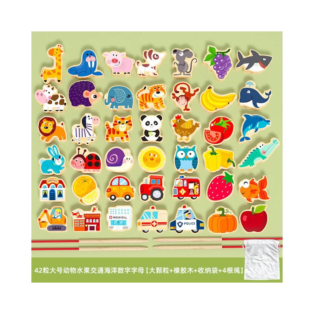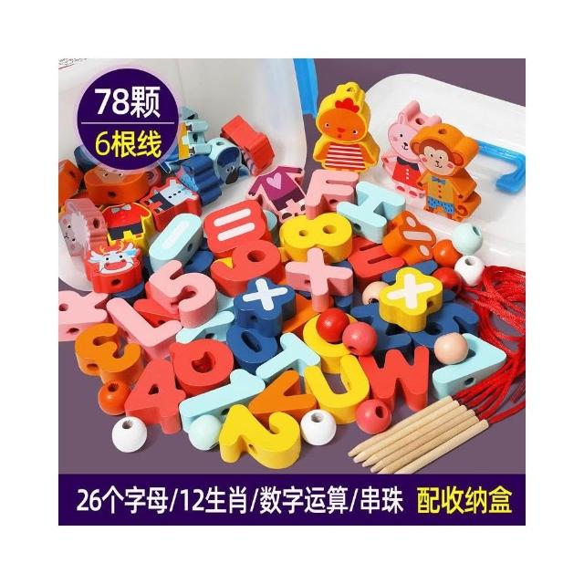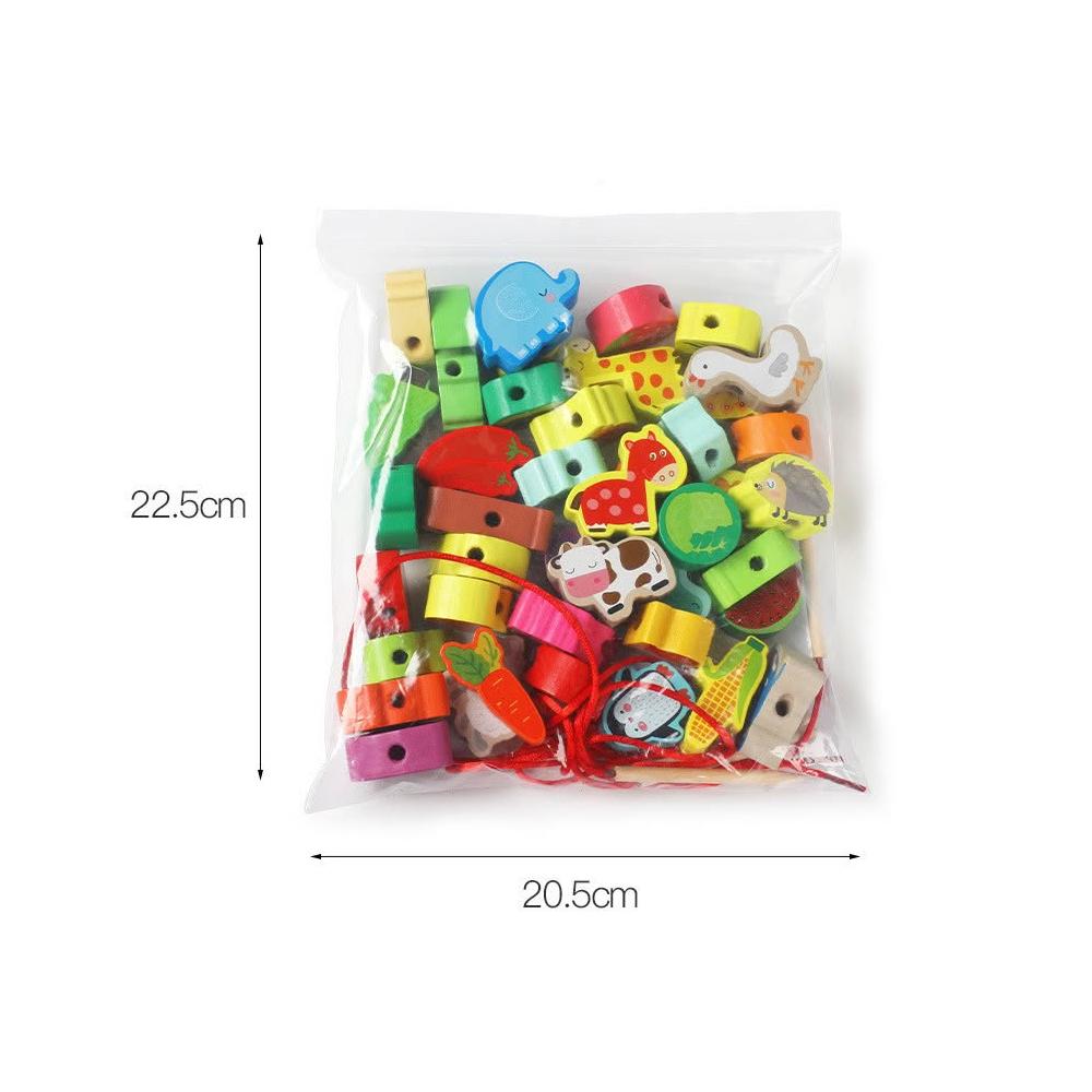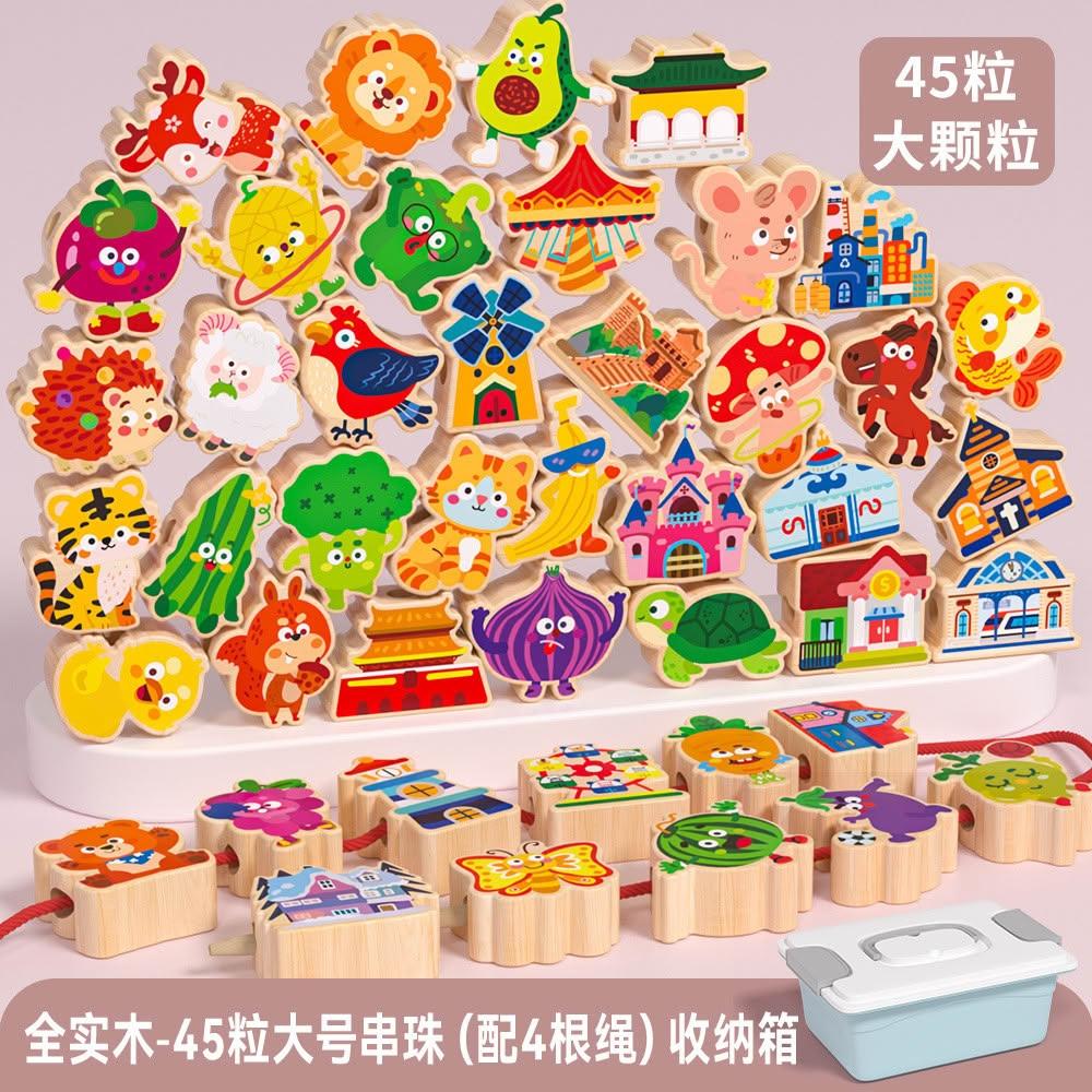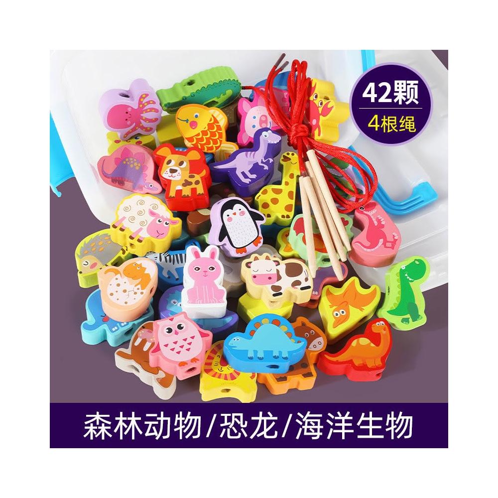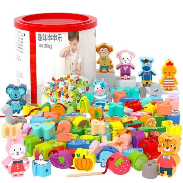 兒童木製益智串珠大顆粒積木玩具動物水果穿繩串串珠益智玩具0-3