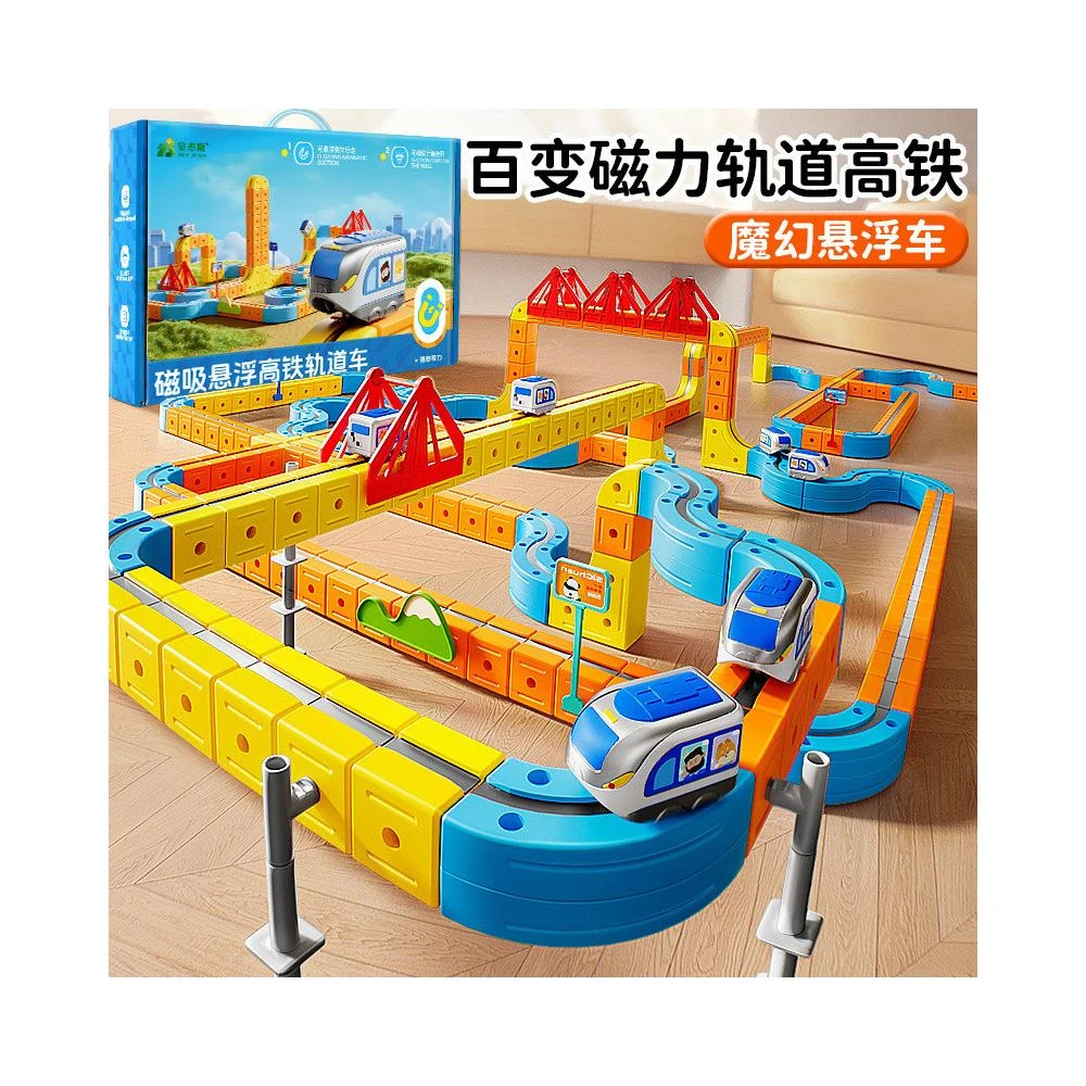兒童益智電動磁吸高鐵火車軌道立方體男孩DIY磁性拼裝玩具