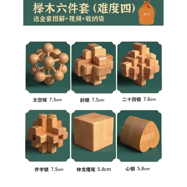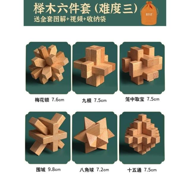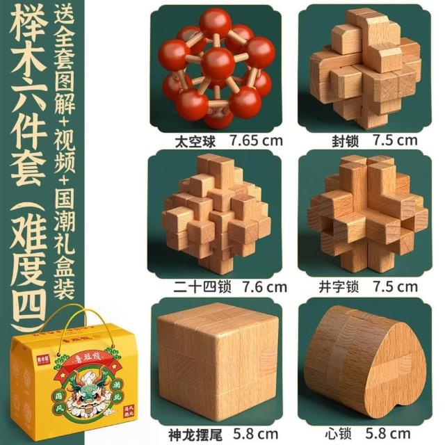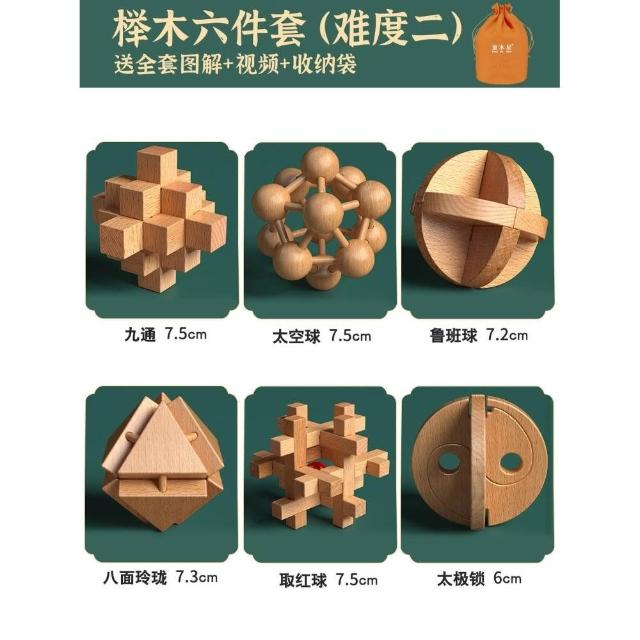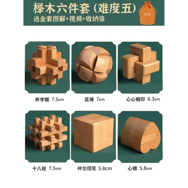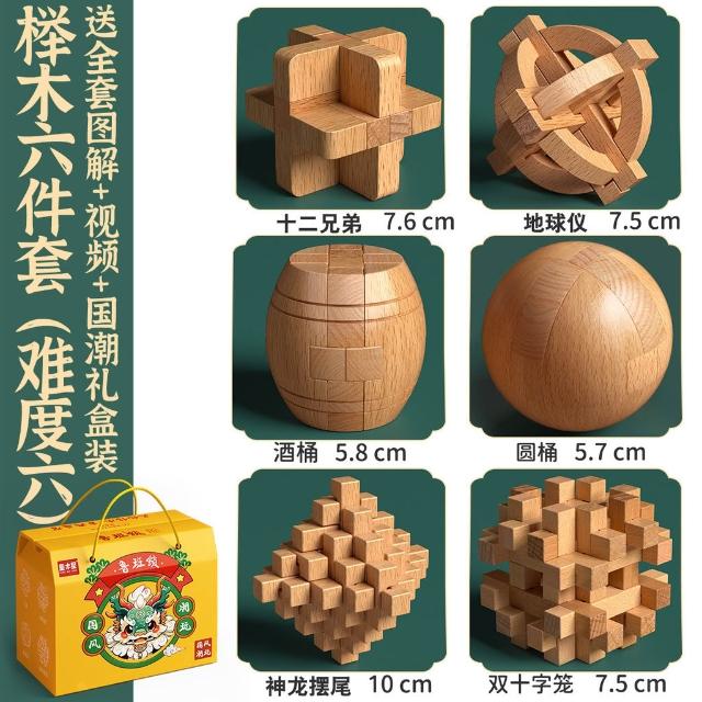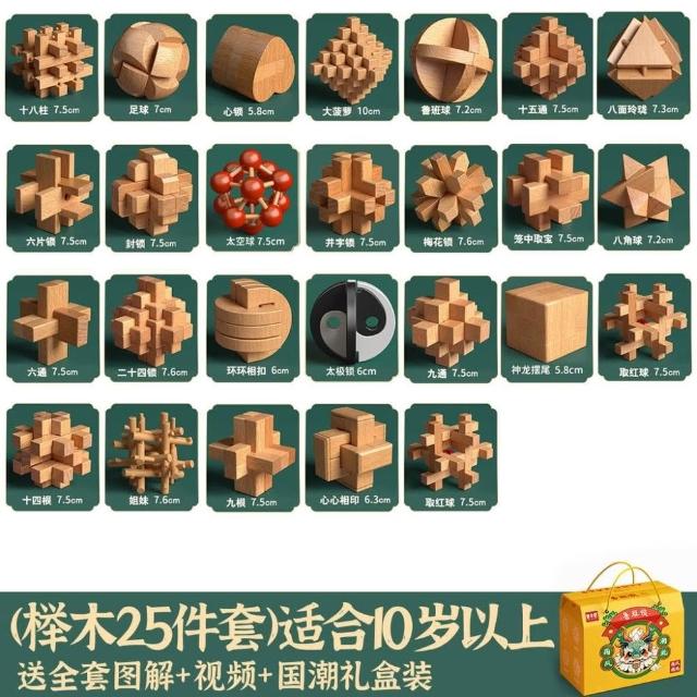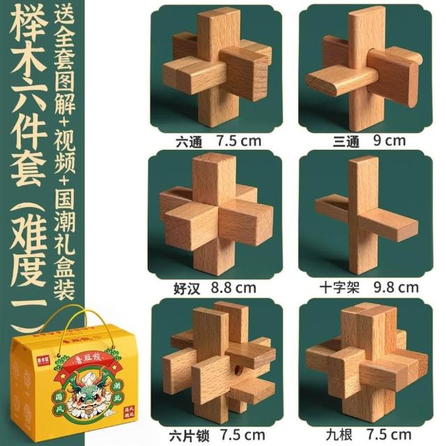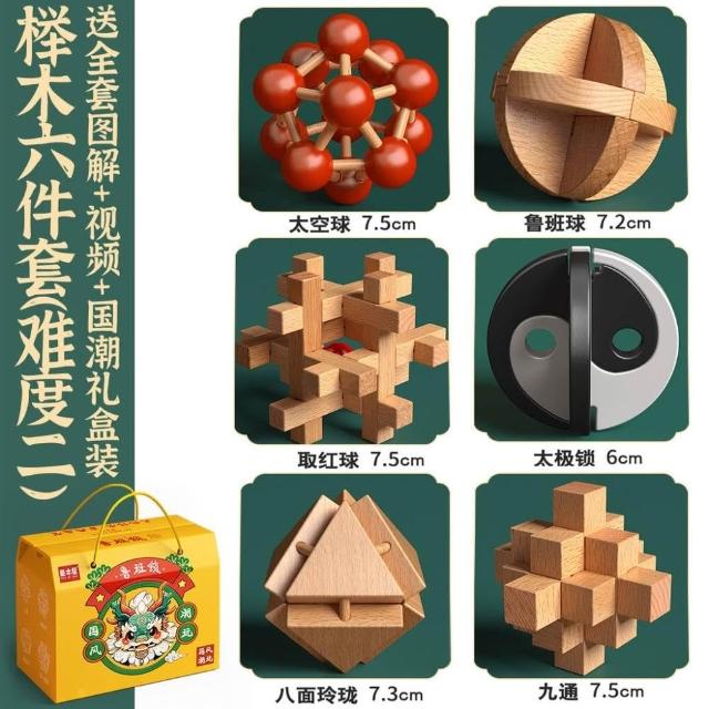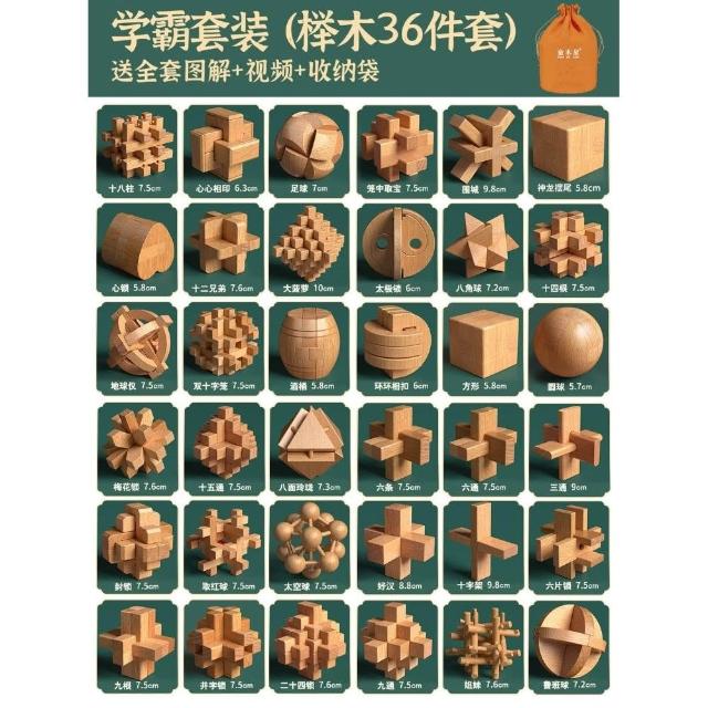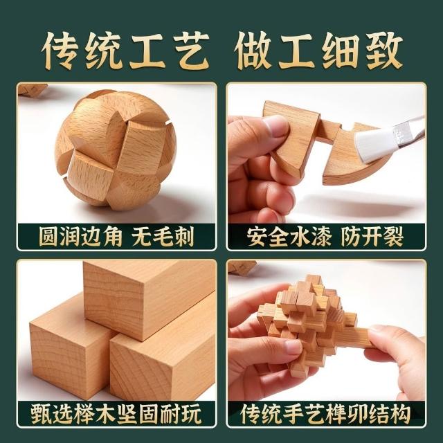魯班鎖孔明鎖全套禮盒小學生益智玩具8-12歲兒童智力解扣榫卯積木
