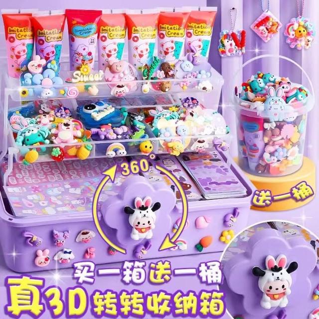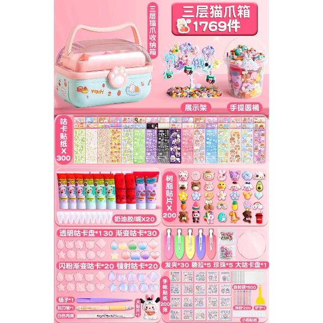 貓爪奶油膠咕卡套裝貼紙diy女孩生日禮物全套收納盒兒童玩具