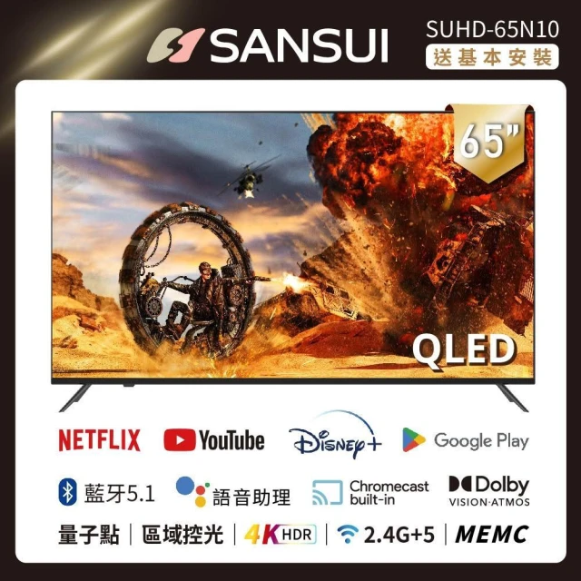 SANSUI 山水65型QLED Google認證4K HDR 量子智慧聯網液晶顯示器 SUHD-65N10 送基本安裝