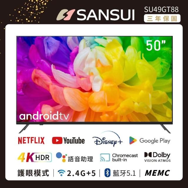 SANSUI 山水50型4K HDR Google認證雙杜比智慧聯網液晶顯示器 SU49GT88 送基本安裝