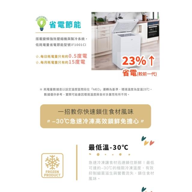 iO★贈保鮮袋100入★變頻商用節能140L臥式冷凍櫃iF-1451Ci 節能標章#特殊區域運費及樓層搬運費另計