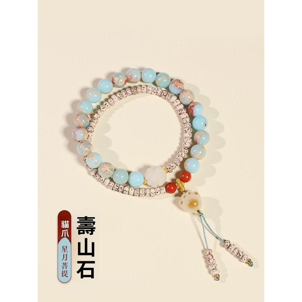 🎗飾間首飾鋪 壽山石手串文玩盤玩貓爪蓮花多圈女款敦煌冷門佛珠手鍊星月菩提子