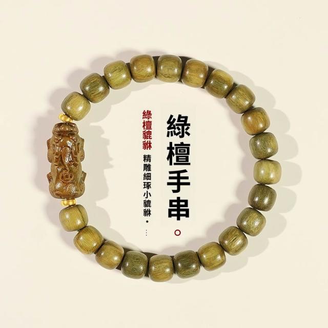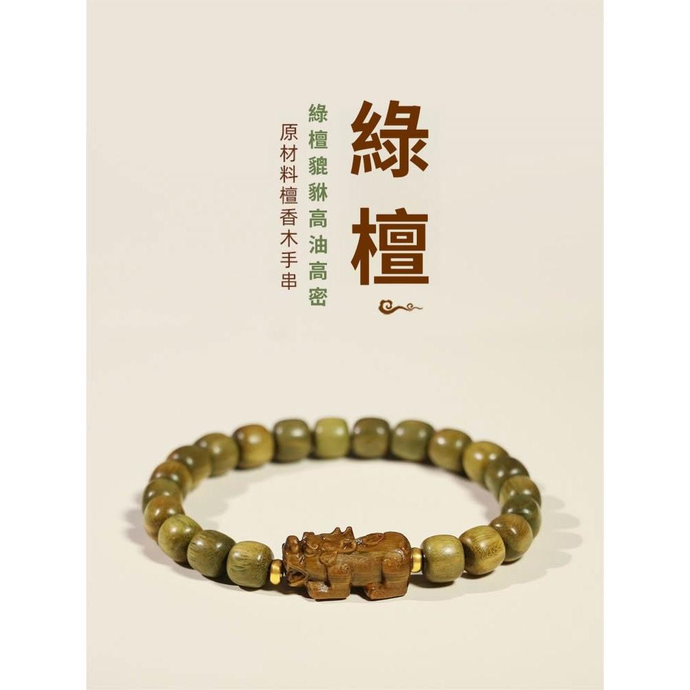 🎗飾間首飾鋪 綠檀木手串貔貅手鍊飾品女款男盤玩森系木質盤串檀香首飾