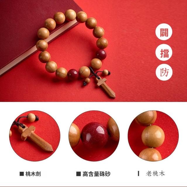 🎗飾間首飾鋪 純桃木劍手串天然野生老桃木手鍊手飾護身符硃砂轉運珠飾品