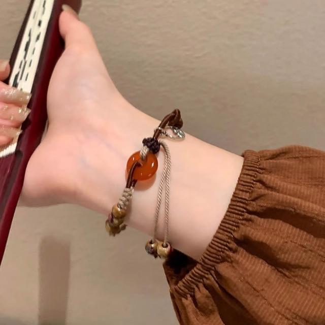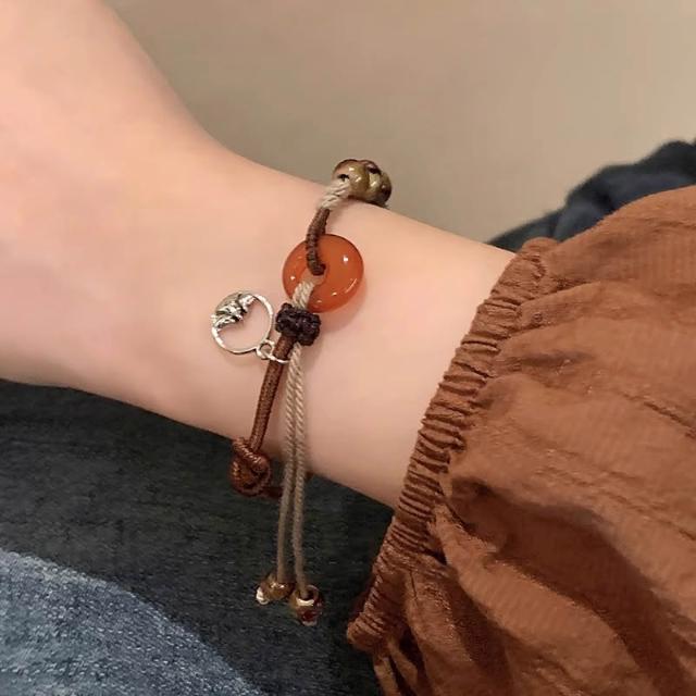 🎗飾間首飾鋪 新中式復古平安扣手鍊首飾可調式手繩小眾設計國風手飾飾品