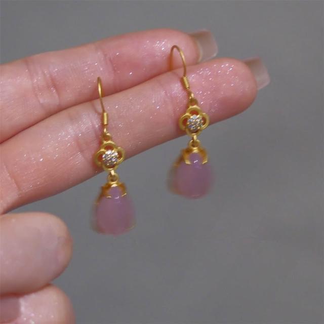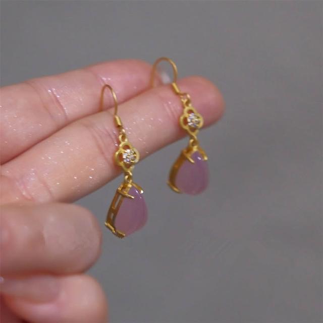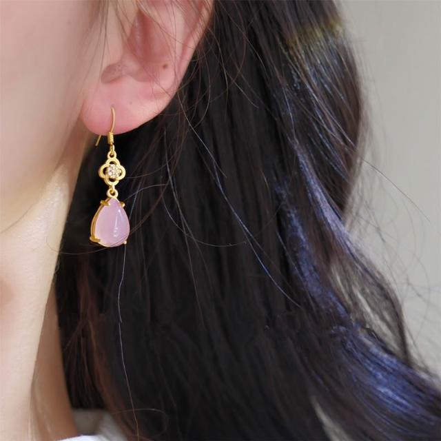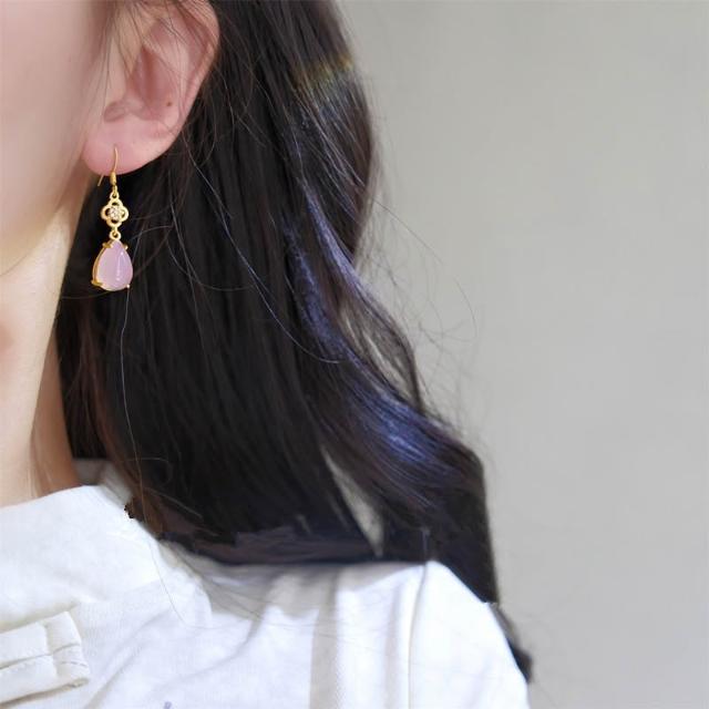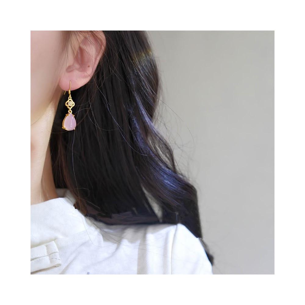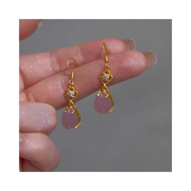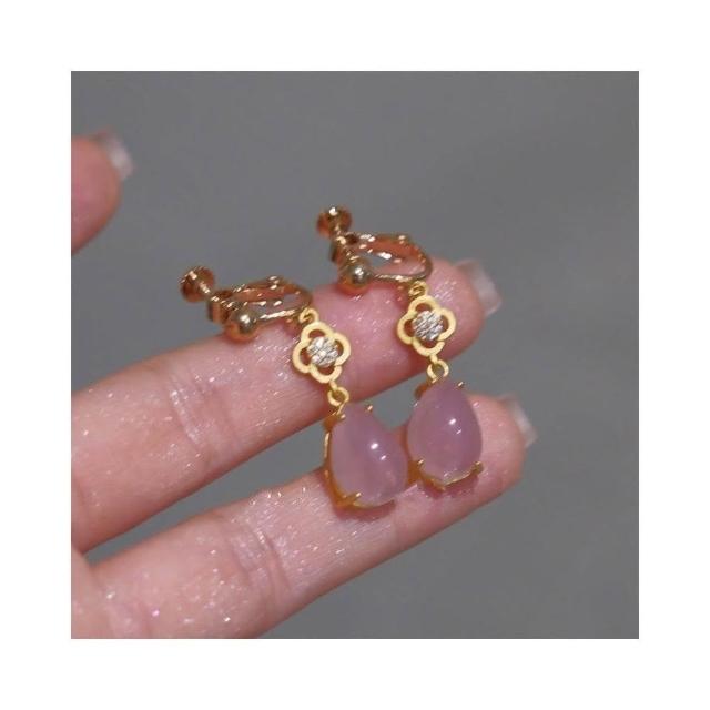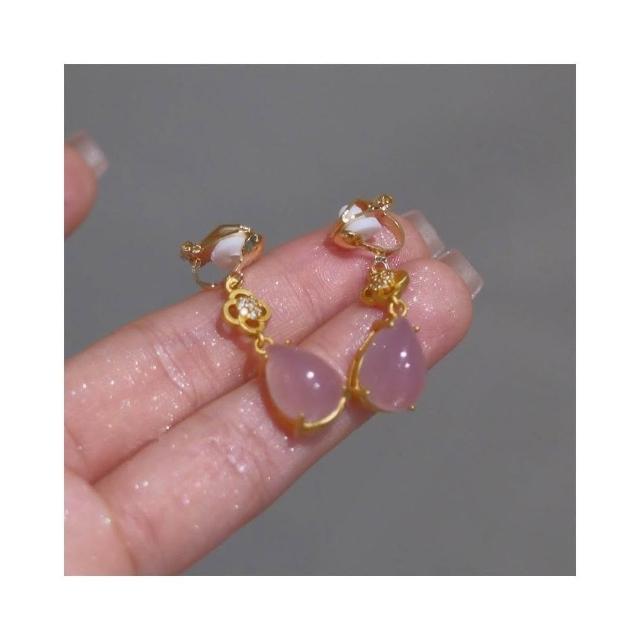 🎗飾間首飾鋪 新中式粉紅水滴耳環耳釘古風耳飾絕美宮廷旗袍漢服首飾蚊香盤耳夾飾品