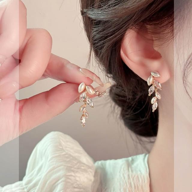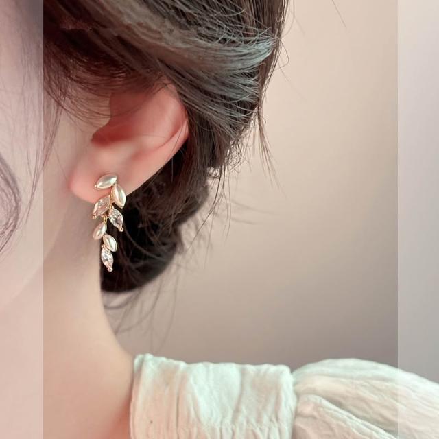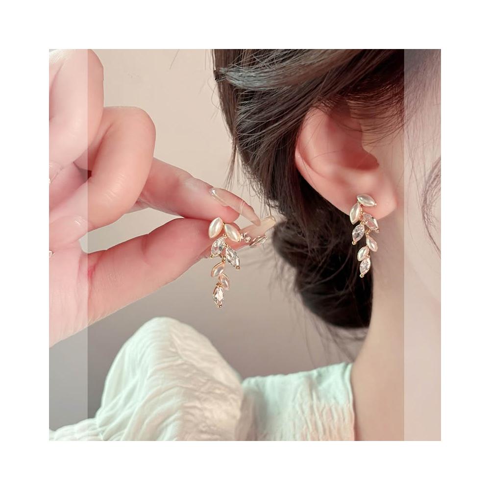 🎗飾間首飾鋪 輕奢高級感麥穗流蘇耳環首飾女鋯石珍珠耳釘飾品百搭耳飾