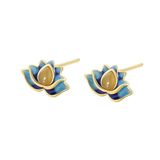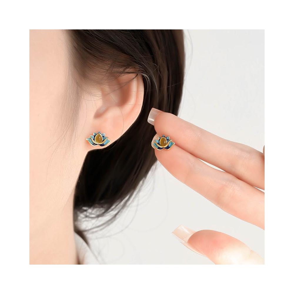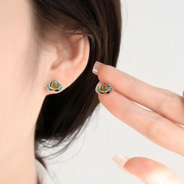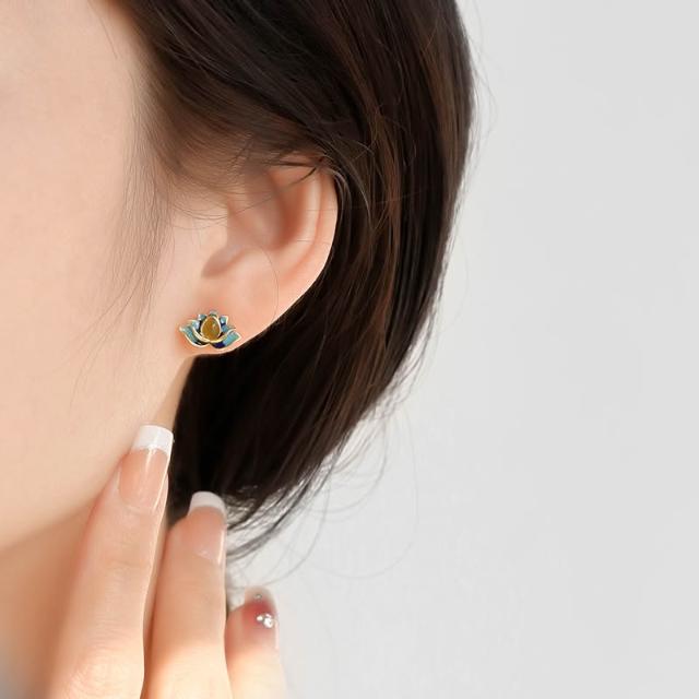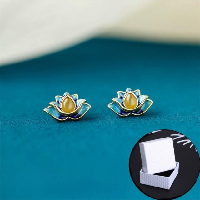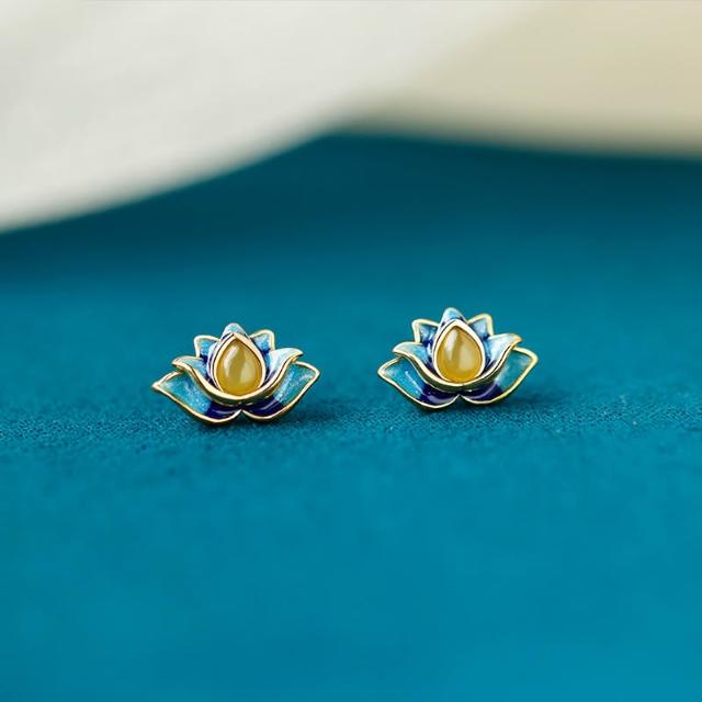 🎗飾間首飾鋪 925純銀和田玉蓮花耳環首飾女國風復古耳釘飾品小眾設計耳飾