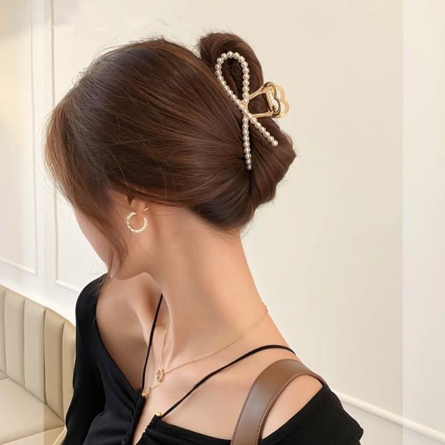 🎗飾間首飾鋪 蝴蝶結珍珠時尚後腦抓夾頭飾配飾輕奢簡約百搭飾品鯊魚夾髮飾女