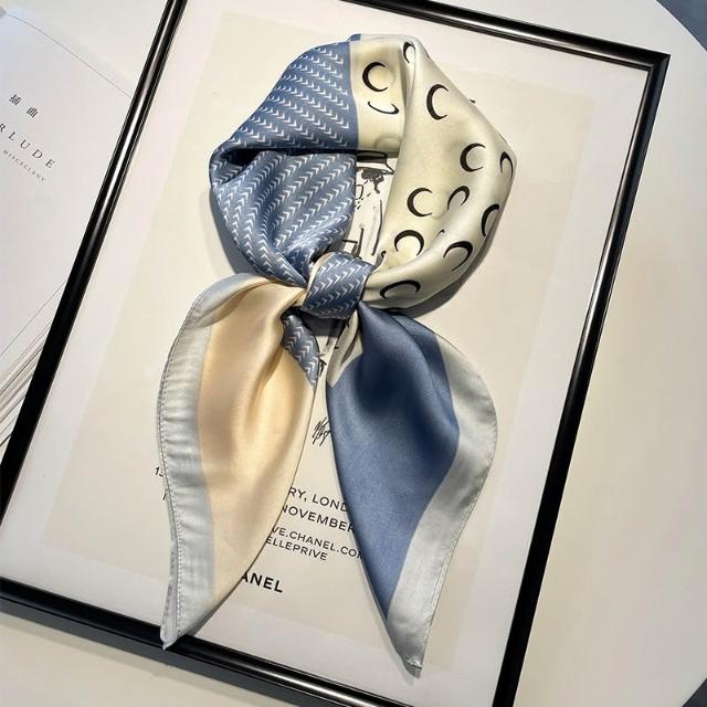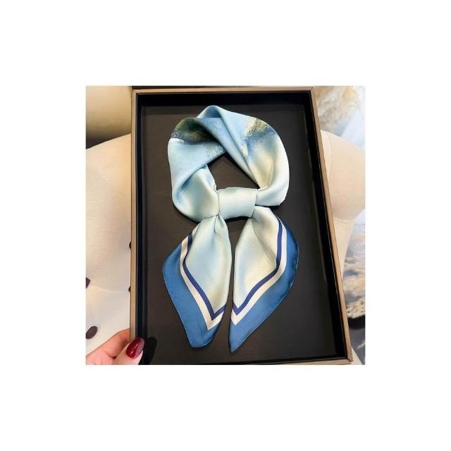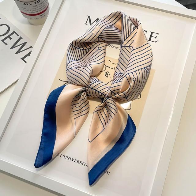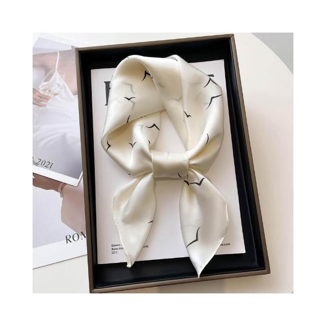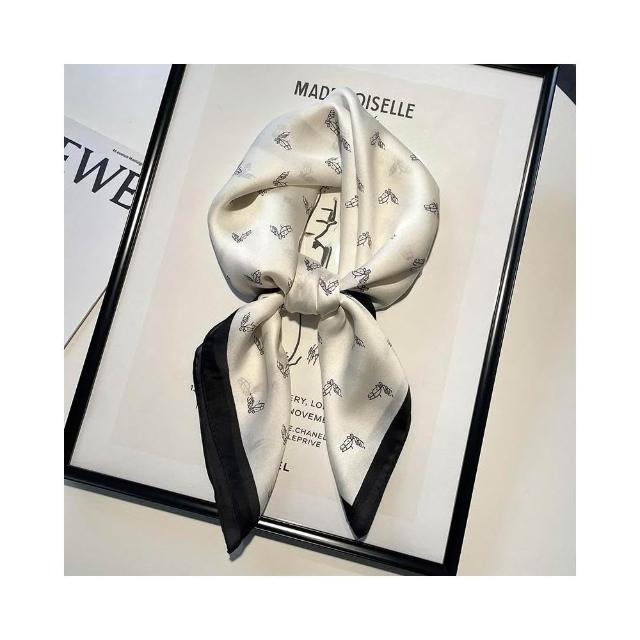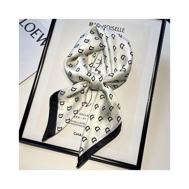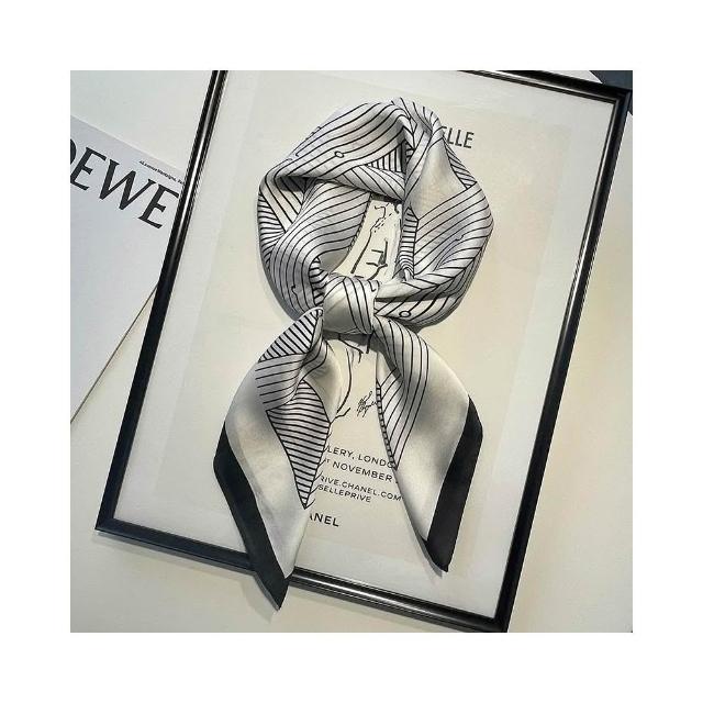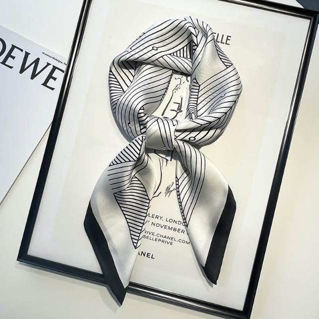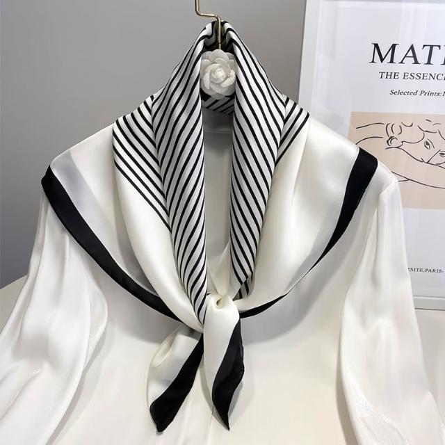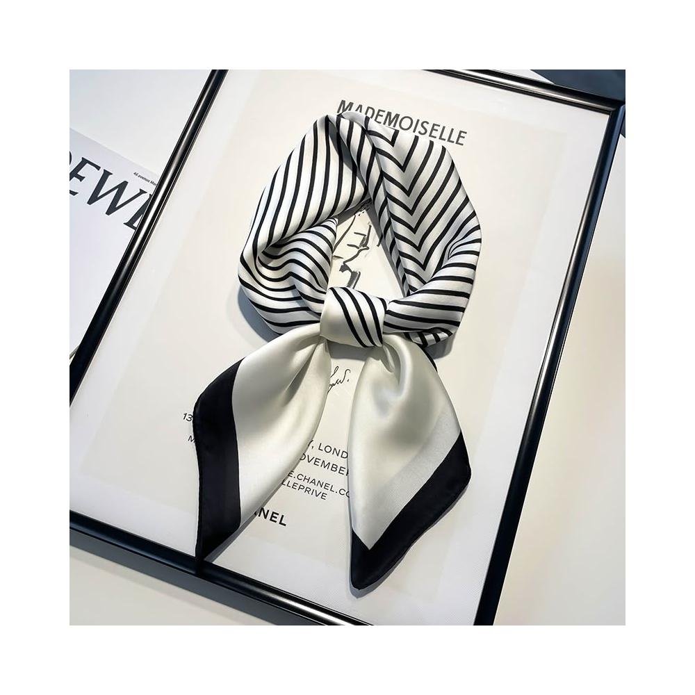 🎗飾間首飾鋪 黑白條紋小方巾絲巾女頭巾髮帶髮飾飾品春秋搭配襯衫職業裝飾護頸圍脖子薄圍巾配飾