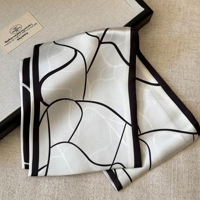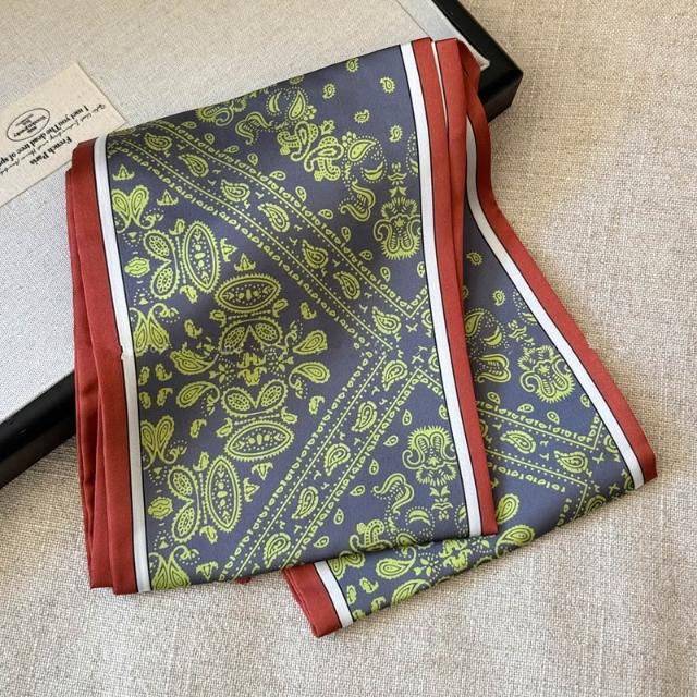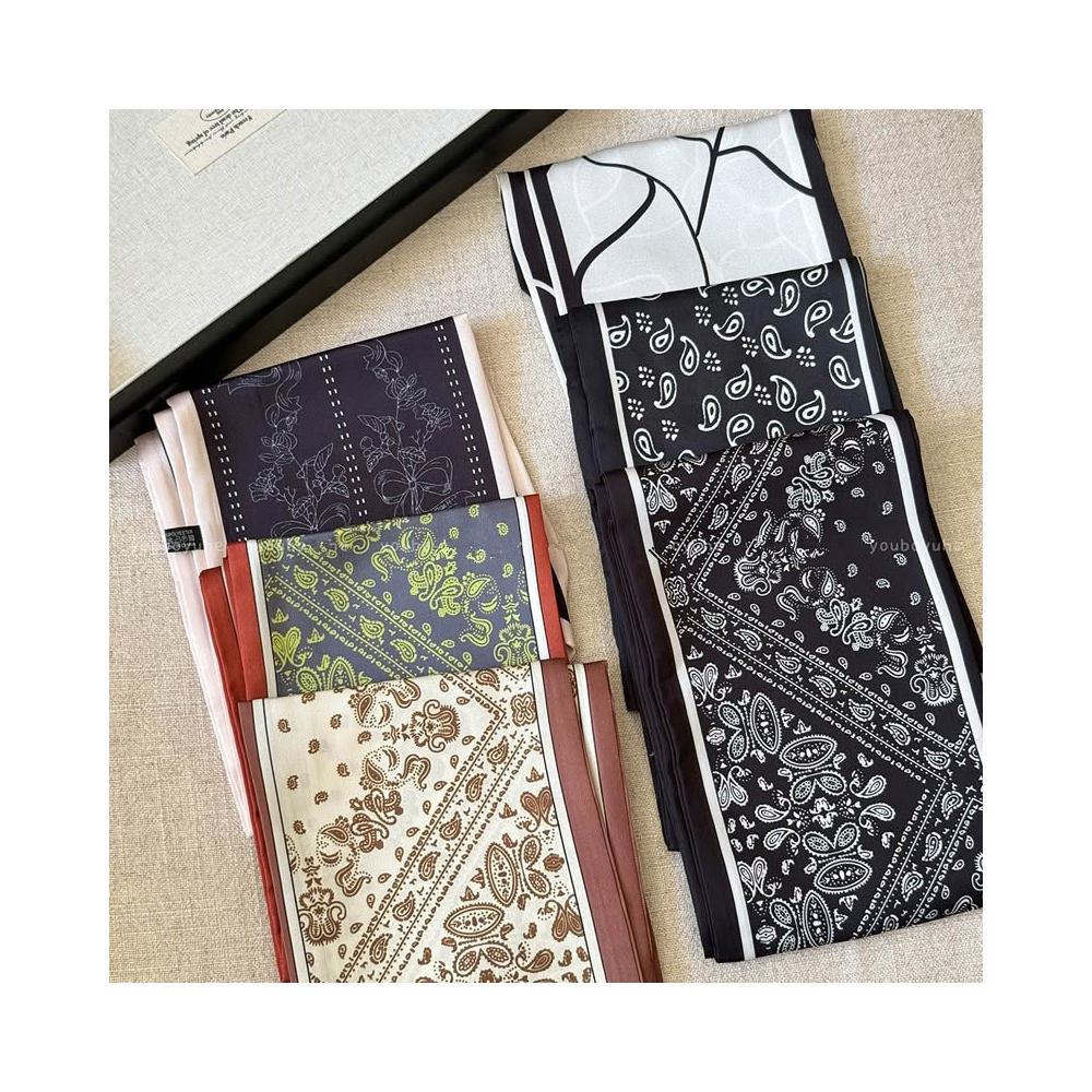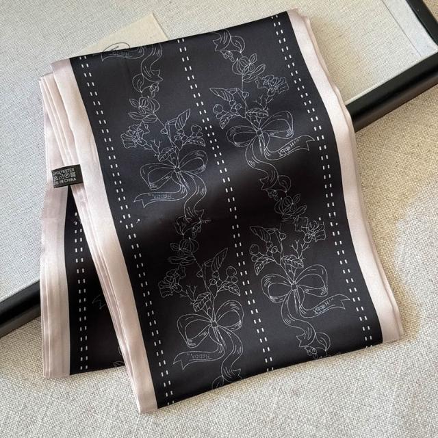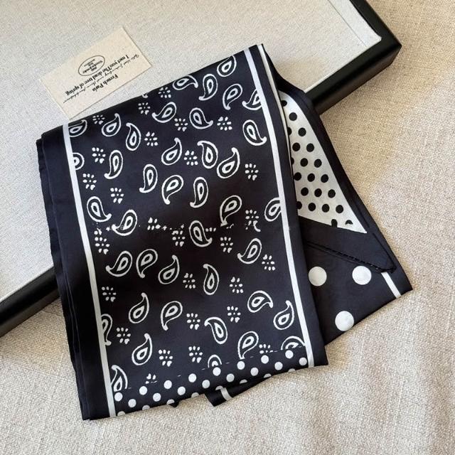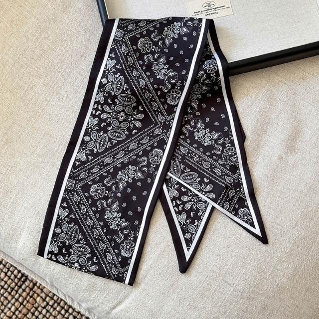 🎗飾間首飾鋪 黑色腰果花長條薄絲巾頭飾韓系斜角領巾飾品時尚百搭高級感氣質繫腰配件配飾