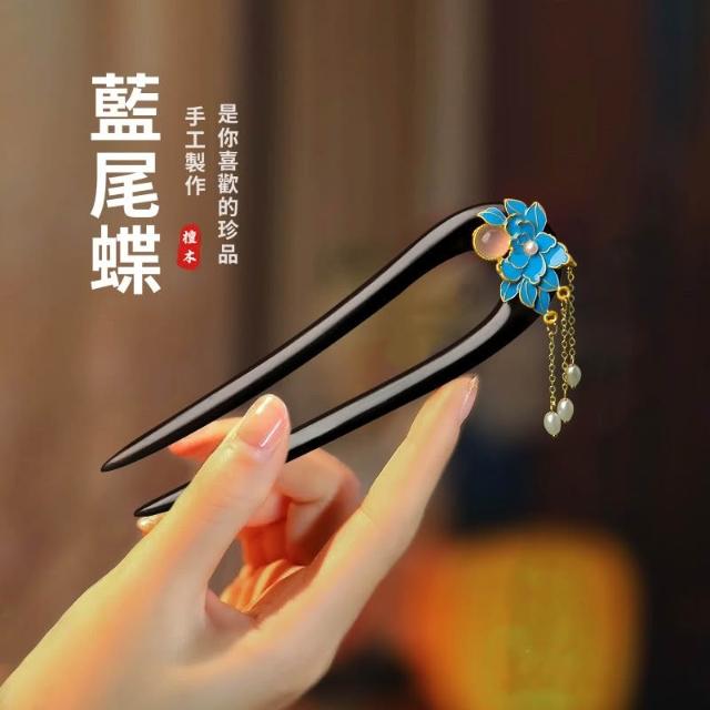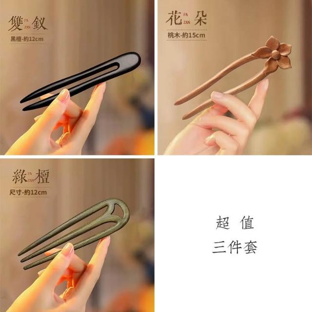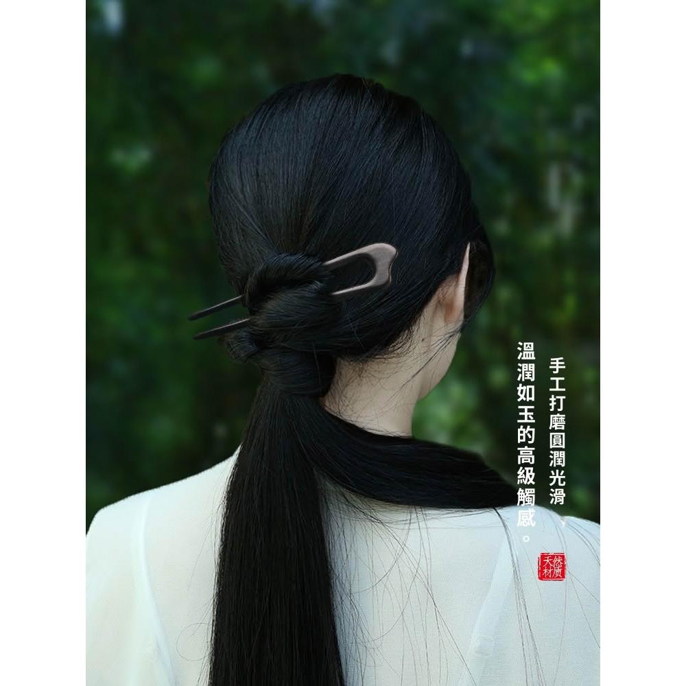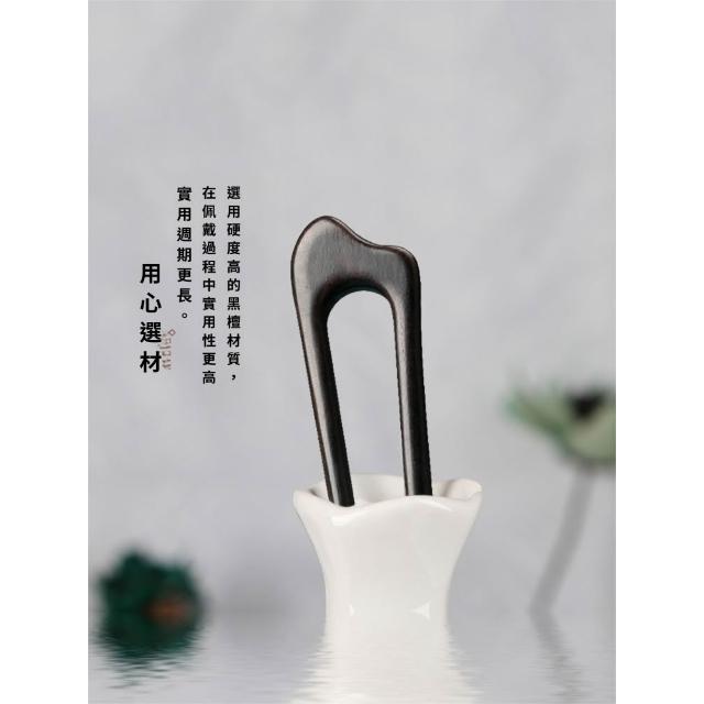 🎗飾間首飾鋪 氣質丸子頭u型髮簪盤髮簪頭飾女現代簡約復古檀木雙釵百搭髮釵