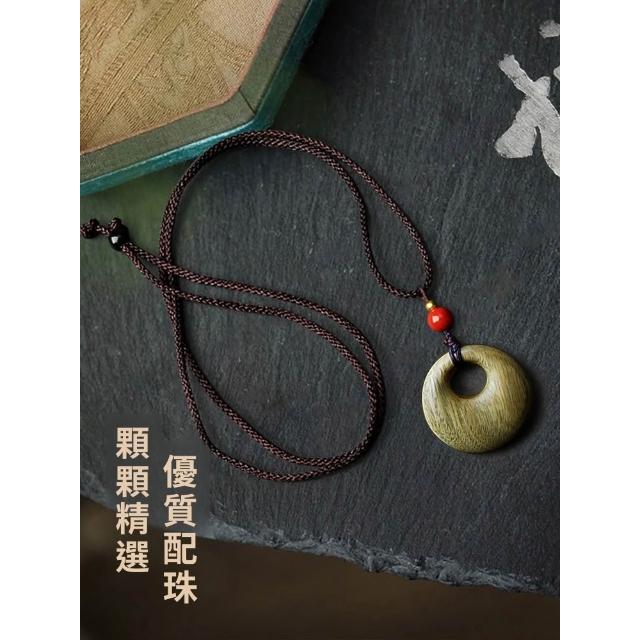 🎗飾間首飾鋪 天然綠檀木古風平安扣吊墜全新中式民族風毛衣鍊長木質項鍊男女款