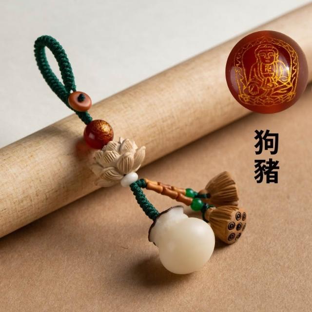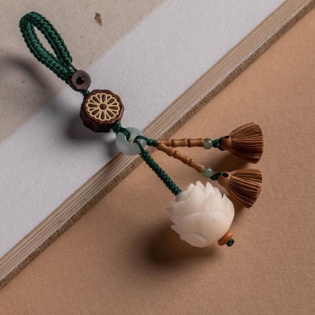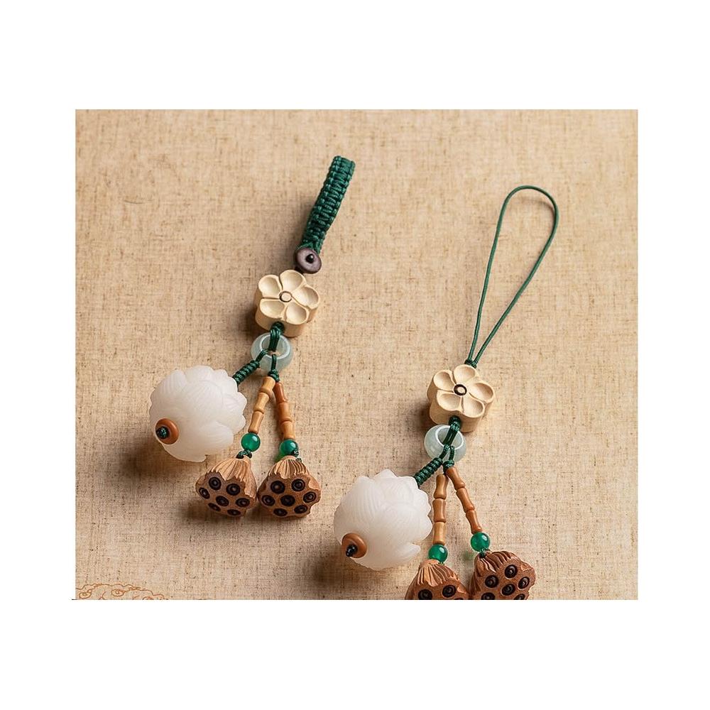 🎗飾間首飾鋪 菩提蓮花手機掛件桃木蓮蓬可愛短款手機鏈吊繩汽車鑰匙扣掛件創意手機掛繩包包掛件古風手機掛飾U盤吊墜
