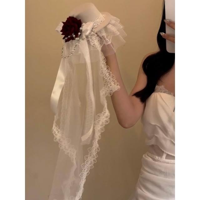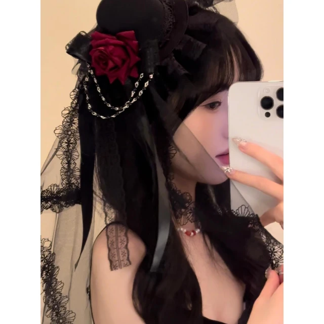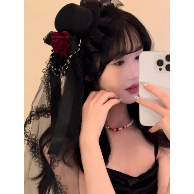 🎗飾間首飾鋪 暗黑系蘿莉哥德玫瑰小禮帽髮飾萬聖節cos萬聖節裝飾道具新娘頭飾