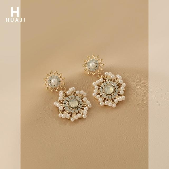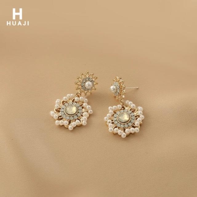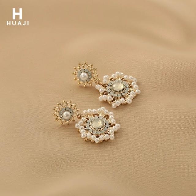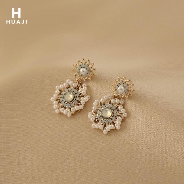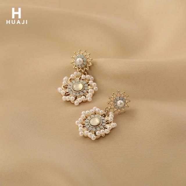 🎗飾間首飾鋪 花跡珍珠耳環女復古優雅宮廷風巴洛克耳環法式輕奢小眾耳飾