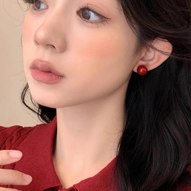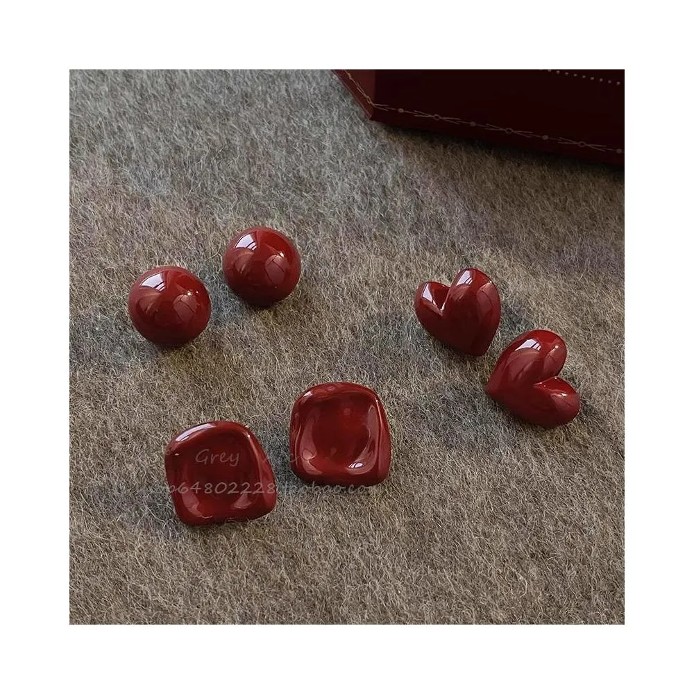 🎗飾間首飾鋪 顯白安可拉紅幾何圖形耳環女復古設計感耳環新款高級感桃心耳飾