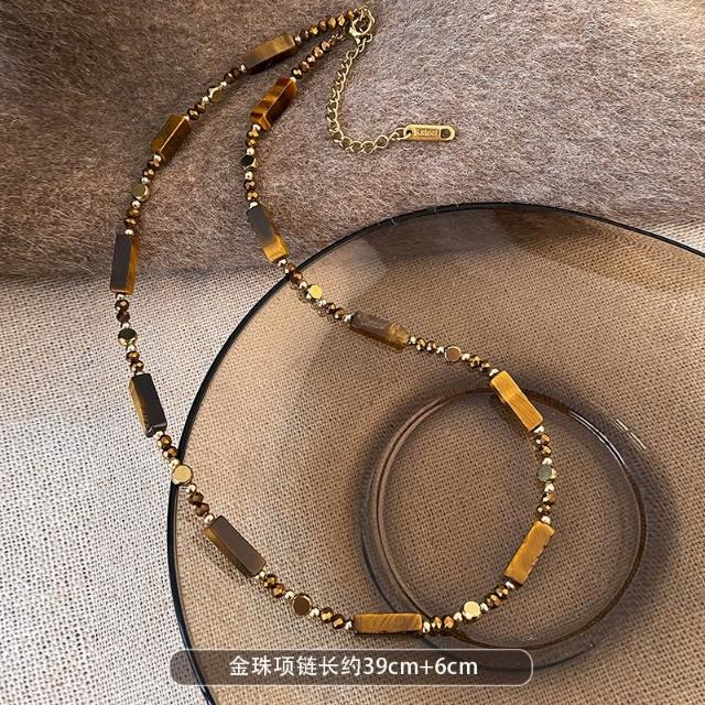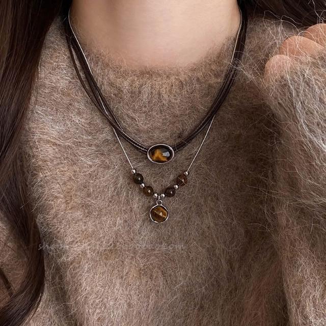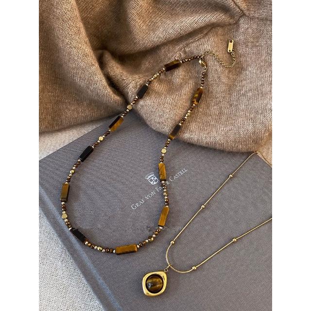 🎗飾間首飾鋪 秋冬美拉德串珠虎眼石吊墜項鍊女復古氣質毛衣鏈輕奢高級感配件