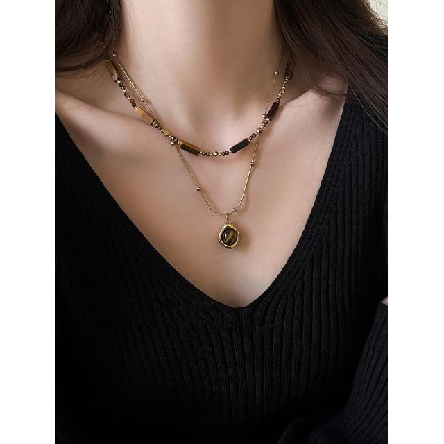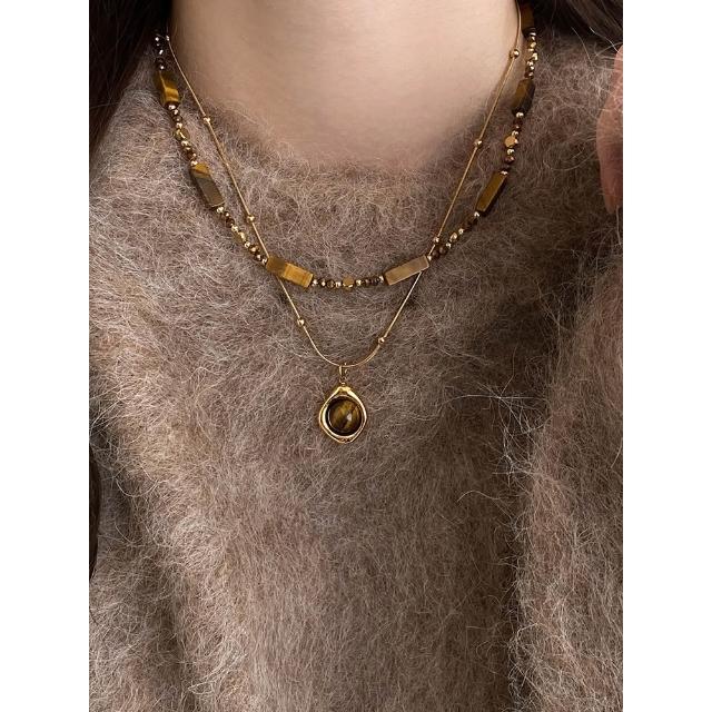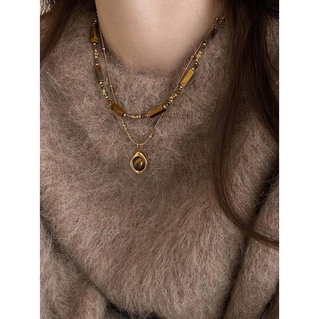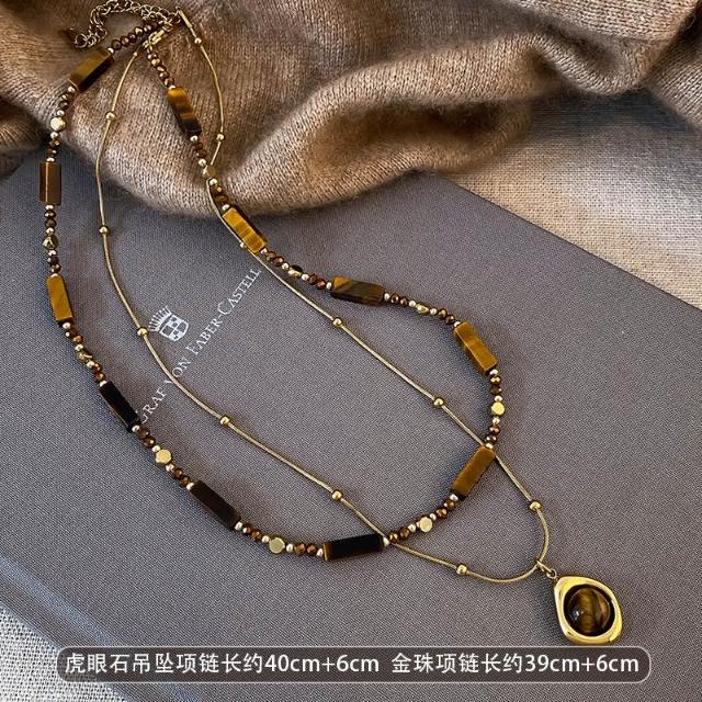 🎗飾間首飾鋪 秋冬美拉德串珠虎眼石吊墜項鍊女復古氣質毛衣鏈輕奢高級感配件