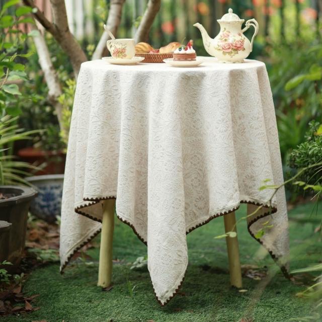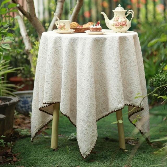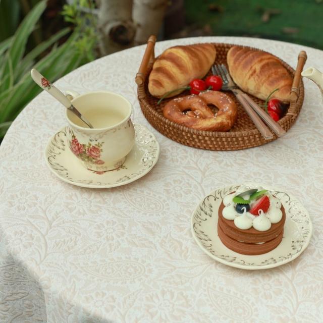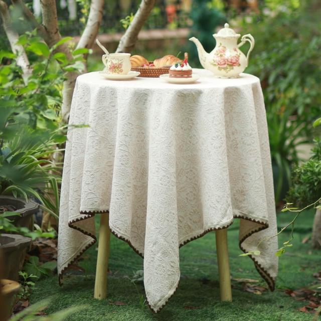 拾光良品 中古風米杏色加厚提花桌布輕奢高級感長方形餐桌布茶几氛圍感臺布