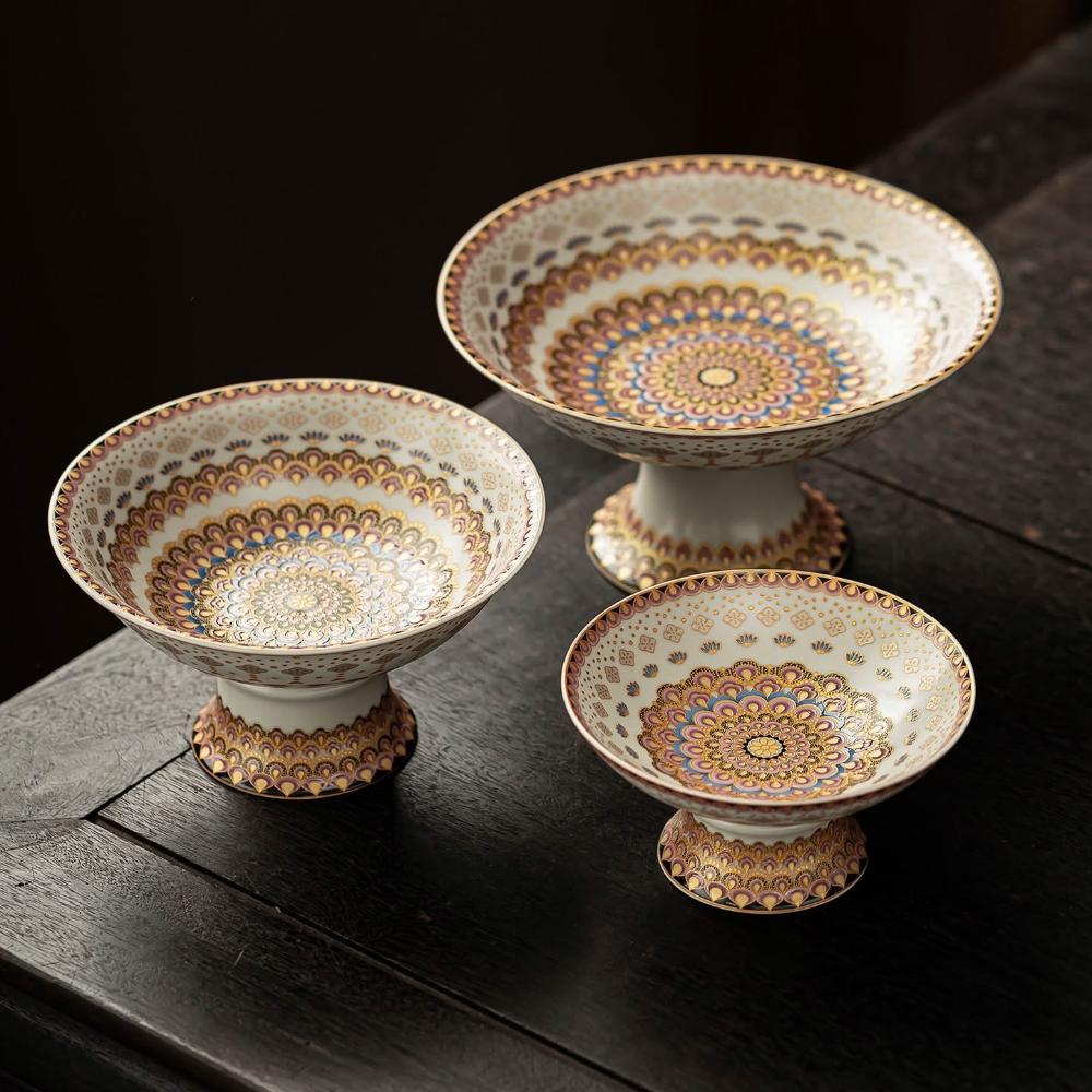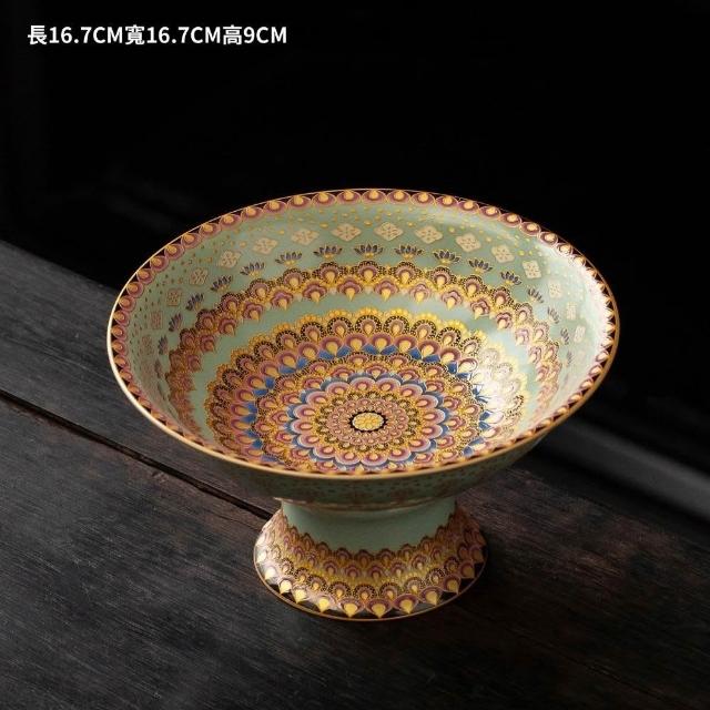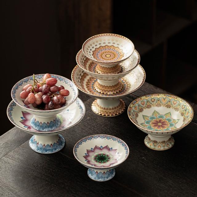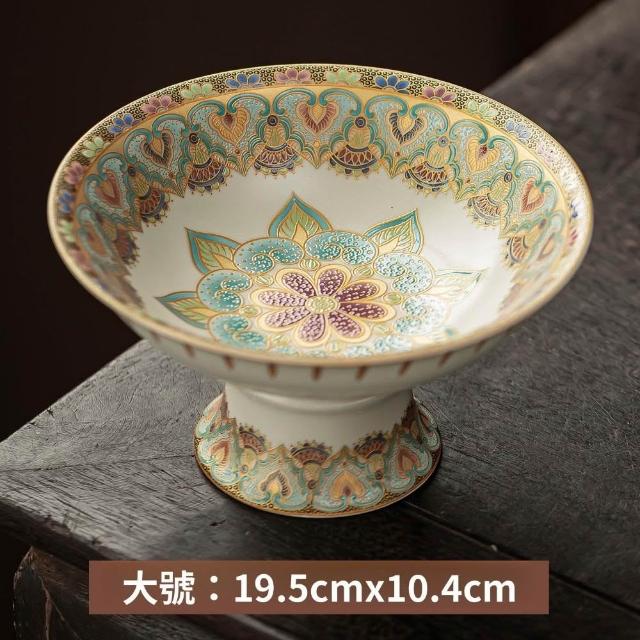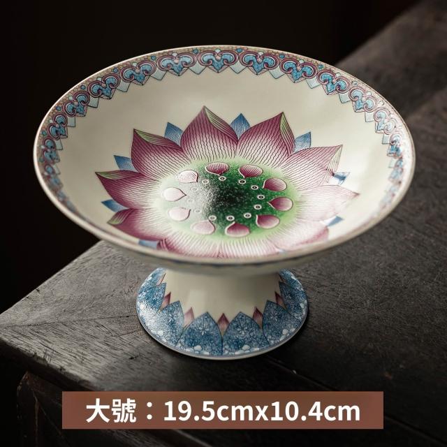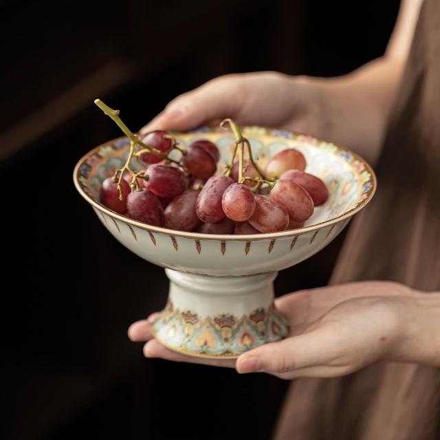 拾光良品 珐琅彩陶瓷大號果盤客廳茶點盤高脚盤拜佛供盤水果盤瓜果盤