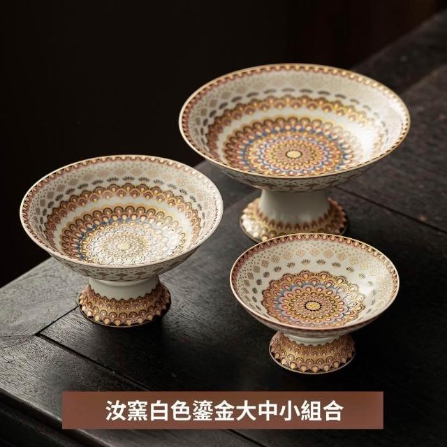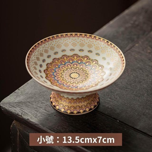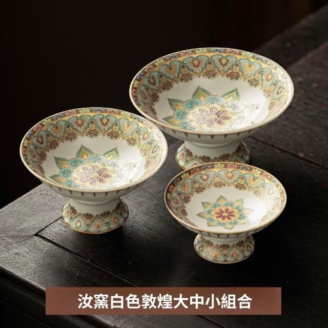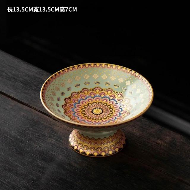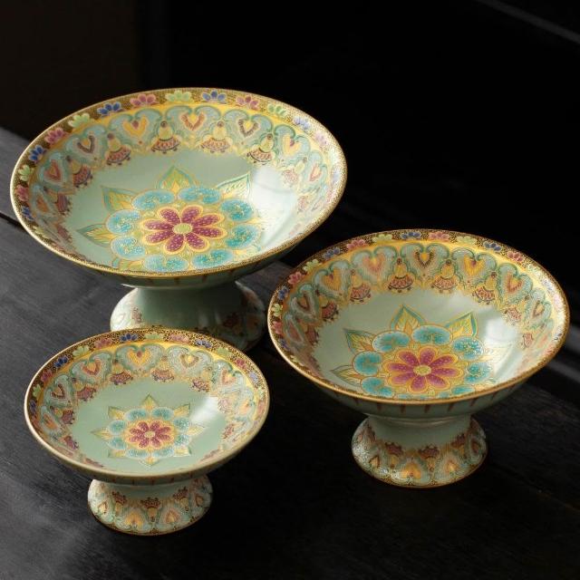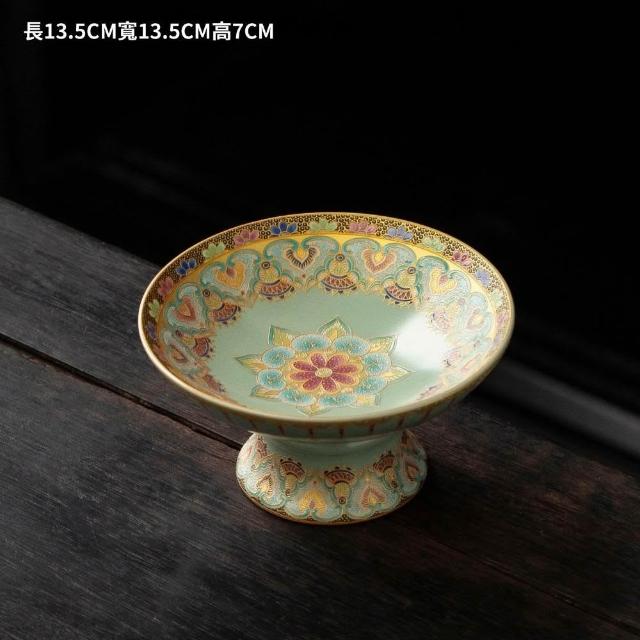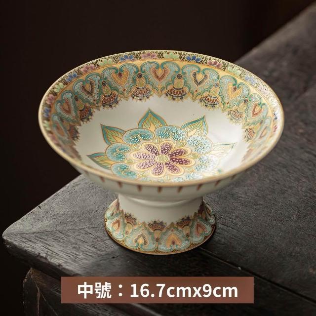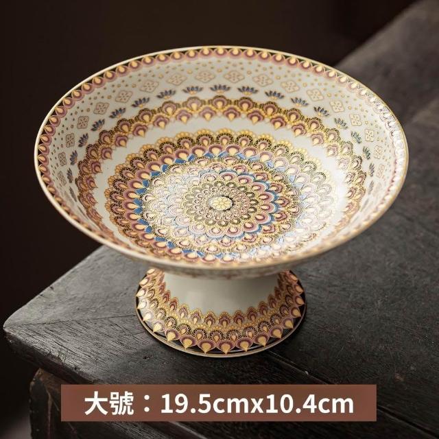 拾光良品 珐琅彩陶瓷大號果盤客廳茶點盤高脚盤拜佛供盤水果盤瓜果盤