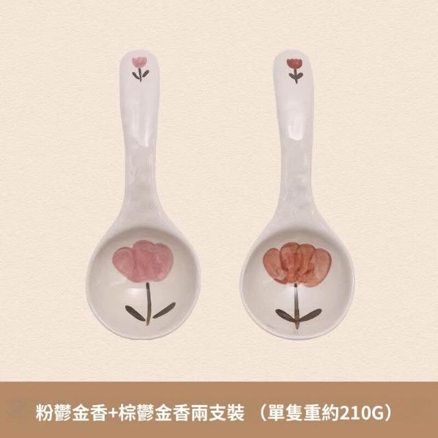 拾光良品 陶瓷大湯勺大號盛湯乘粥勺稀飯勺大勺子艺文復古釉下彩長柄