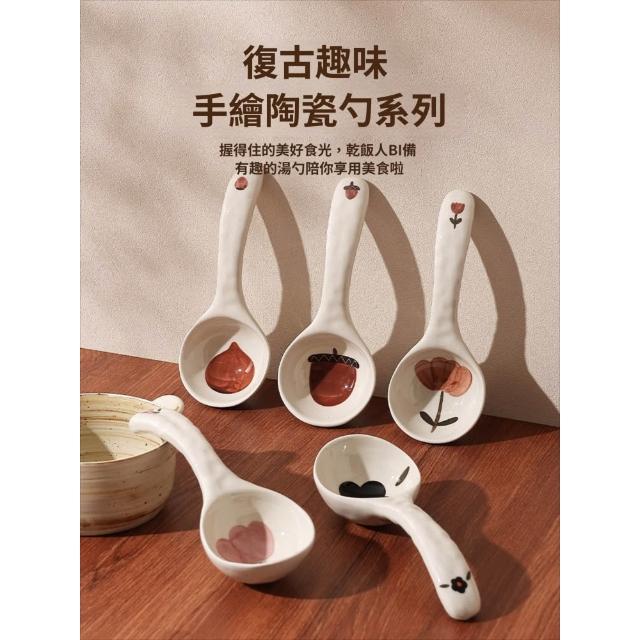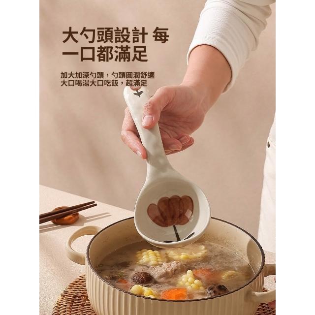 拾光良品 陶瓷大湯勺大號盛湯乘粥勺稀飯勺大勺子艺文復古釉下彩長柄