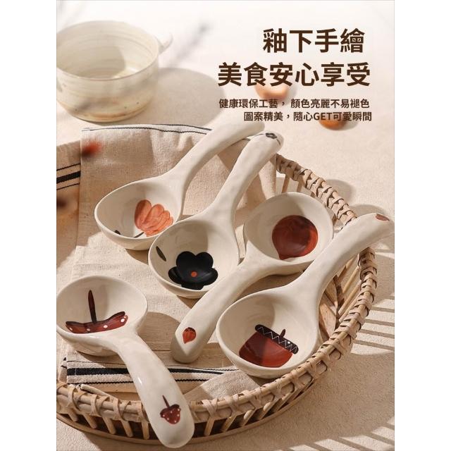 拾光良品 陶瓷大湯勺大號盛湯乘粥勺稀飯勺大勺子艺文復古釉下彩長柄