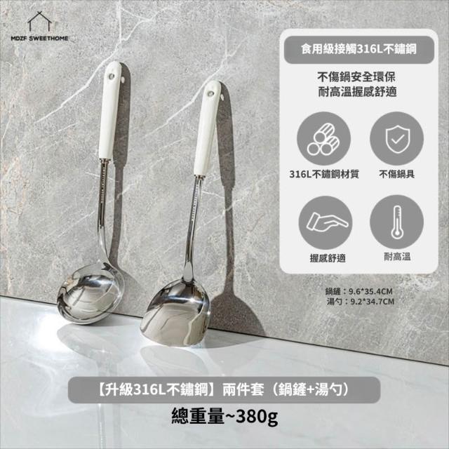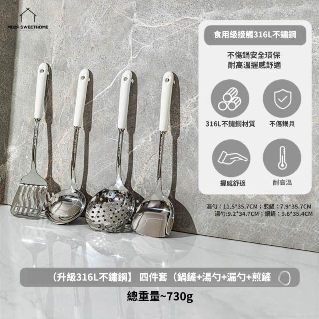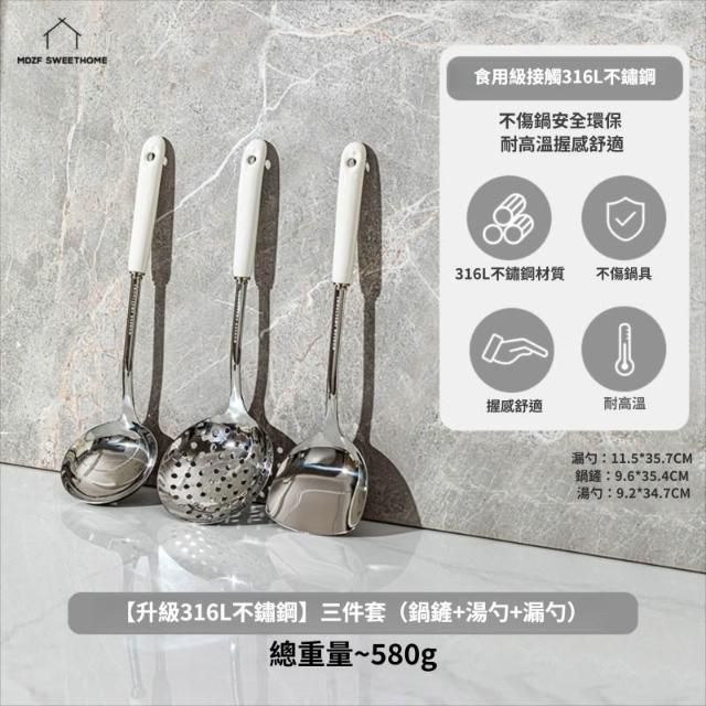 拾光良品 鍋鏟家用湯勺子漏勺304炒菜鏟子316L不銹鋼全套廚具套裝