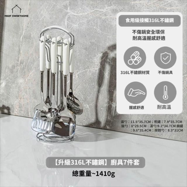 拾光良品 鍋鏟家用湯勺子漏勺304炒菜鏟子316L不銹鋼全套廚具套裝