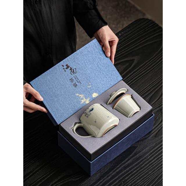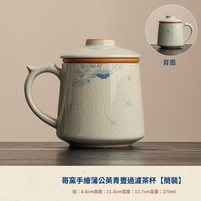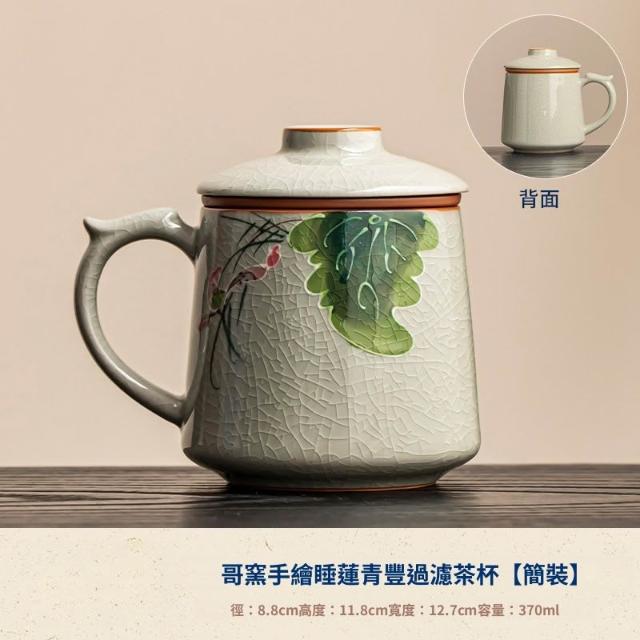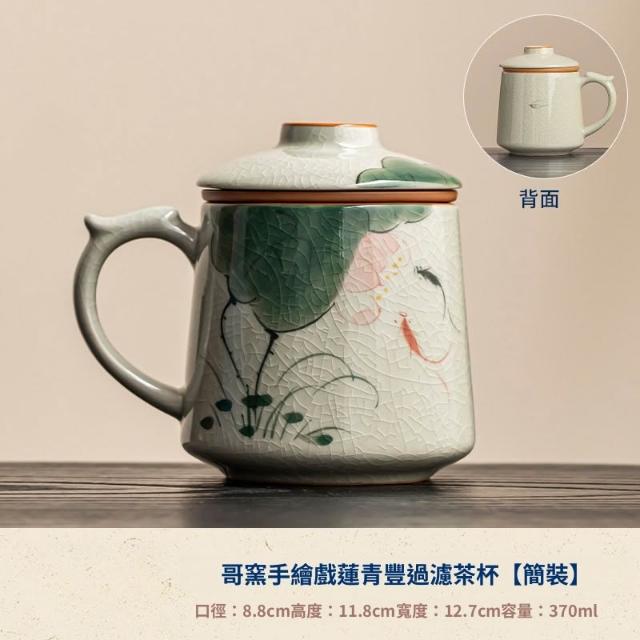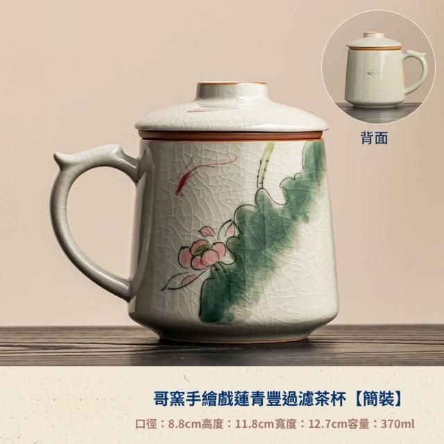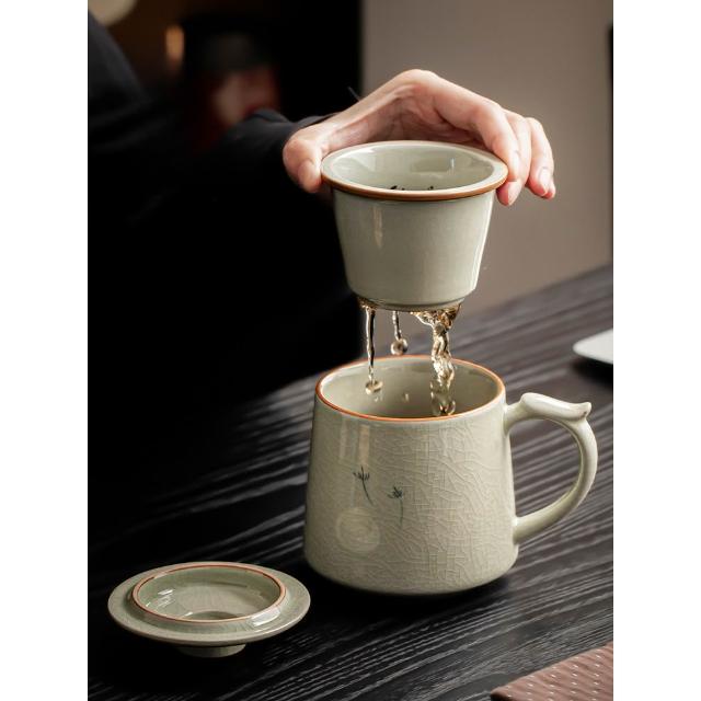 拾光良品 哥窑手繪茶杯陶瓷茶水分離杯辦公室過濾泡茶杯水杯帶蓋杯子