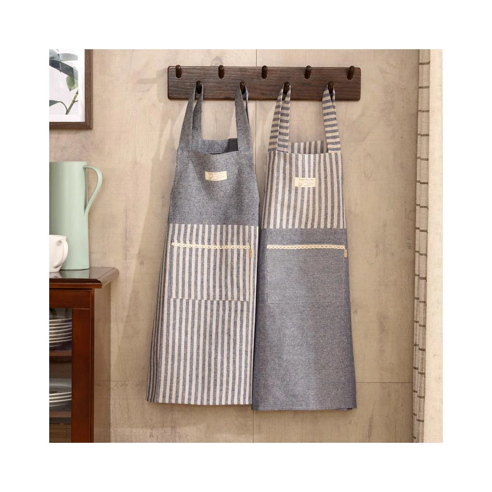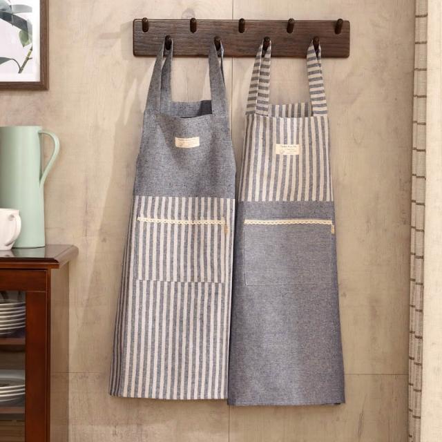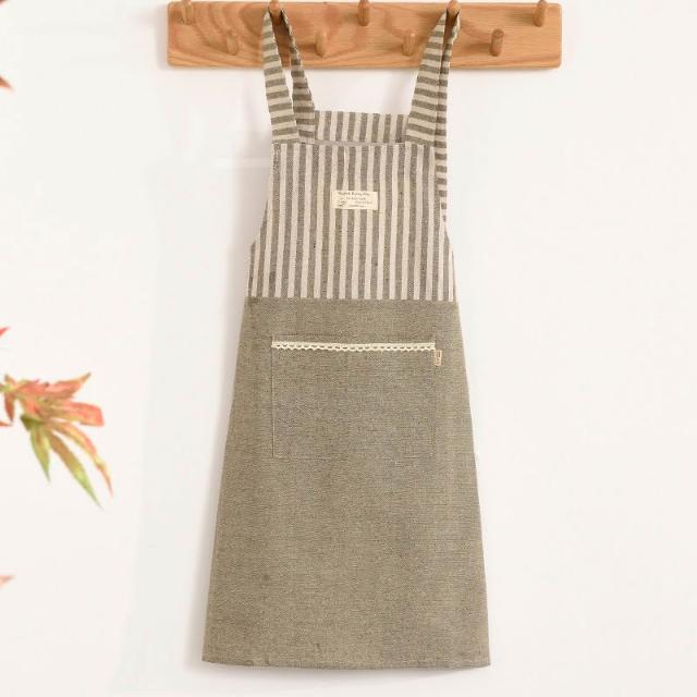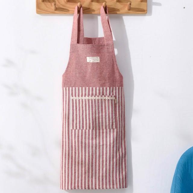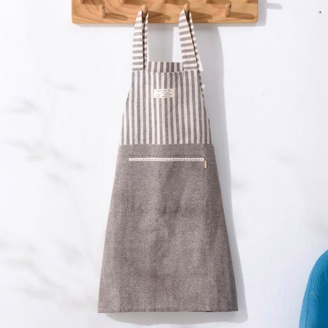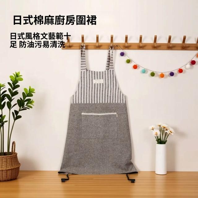 拾光良品 日式棉麻家用廚房圍裙防油成人做飯罩衣工作服咖啡店服艺文圍裙