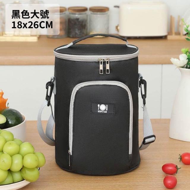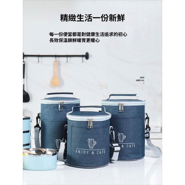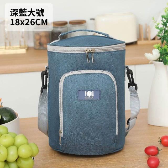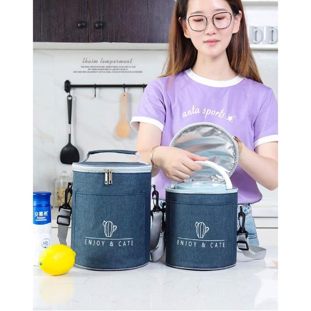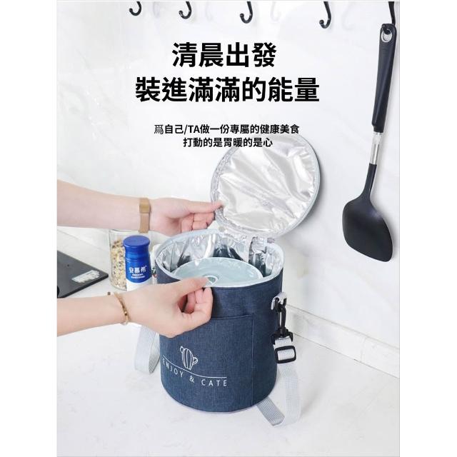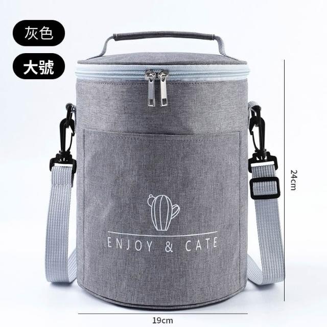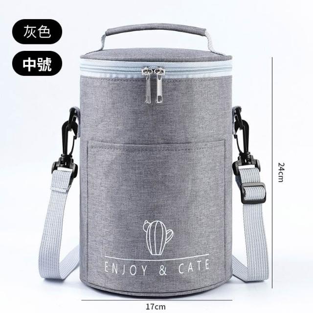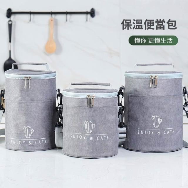 拾光良品 圓形保溫裝飯盒手提包大號便當袋加厚圓桶鋁箔帶飯桶保暖袋子餐包