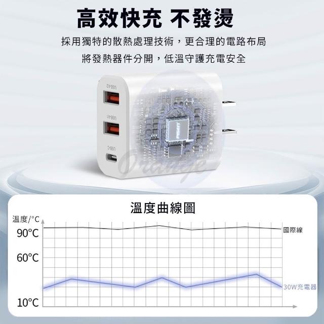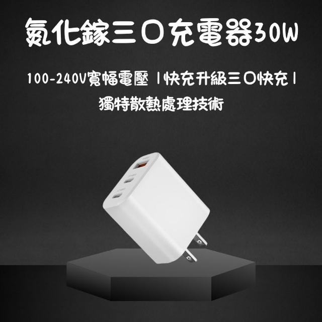 氮化鎵三口充電器30W 豆腐頭 充電頭 3孔 USB充電頭 Type-C USBA 30W 快充