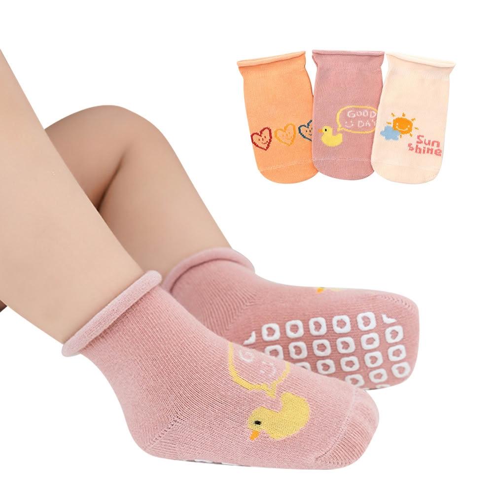 雪倫小舖3雙入童襪-滿版底膠防滑襪 嬰兒襪 捲邊鬆口寶寶襪