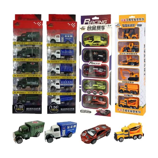 雪倫小舖5入玩具汽車模型 合金小汽車 警車 工程車 賽車 軍事車 兒童玩具車