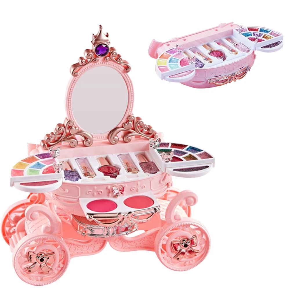 雪倫小舖兒童化妝品 無毒安全可水洗兒童彩妝玩具盒 南瓜馬車燈光音效款