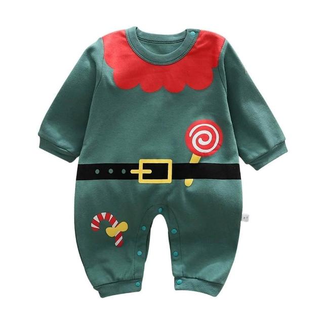 雪倫小舖嬰兒長袖連身衣 聖誕熊熊長袖包屁衣(爬服 純棉童裝)