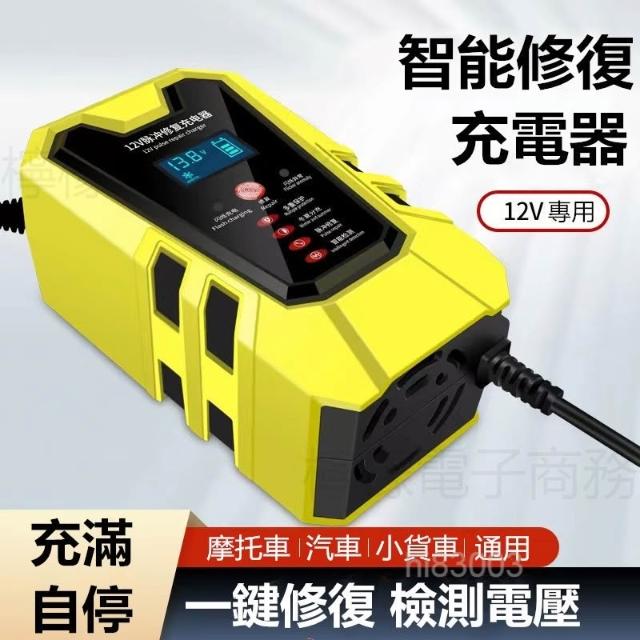 🌹闆娘精選現貨🌟12V6A智能脉冲 修复 蓄电池 汽车 电瓶摩托车电瓶充电器 速出