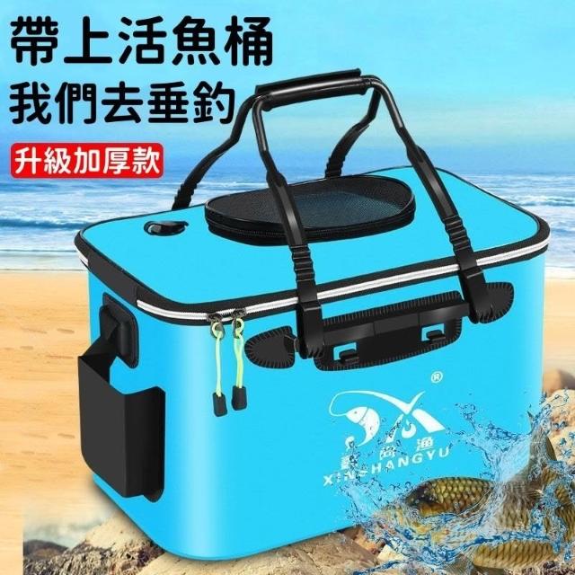 🌹闆娘精選現貨✨45L大容量活魚桶 釣魚桶 魚箱 魚護桶 裝魚桶 釣魚活餌箱 eva折疊釣箱 加厚防潑水桶 手提肩背設