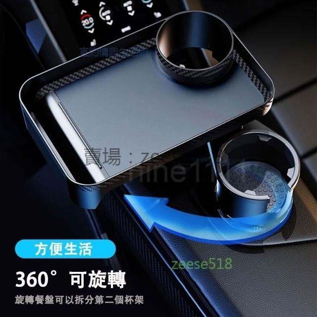 🍁娘小娘精選好貨🔥車載360度旋轉餐盤 車用飲料架 一分二水杯架 車用擴充杯架 車用多功能水杯架 托盤 置物架小餐桌